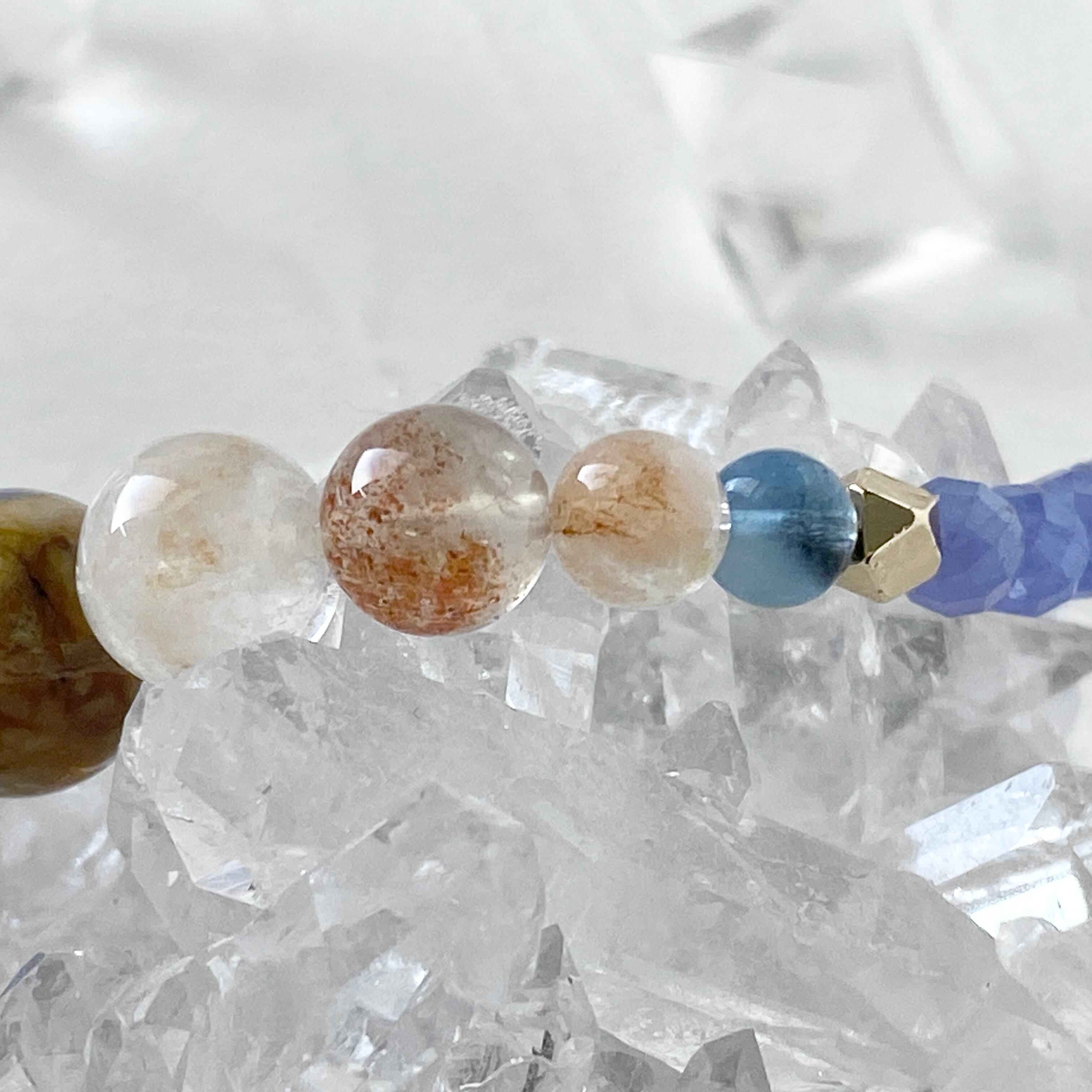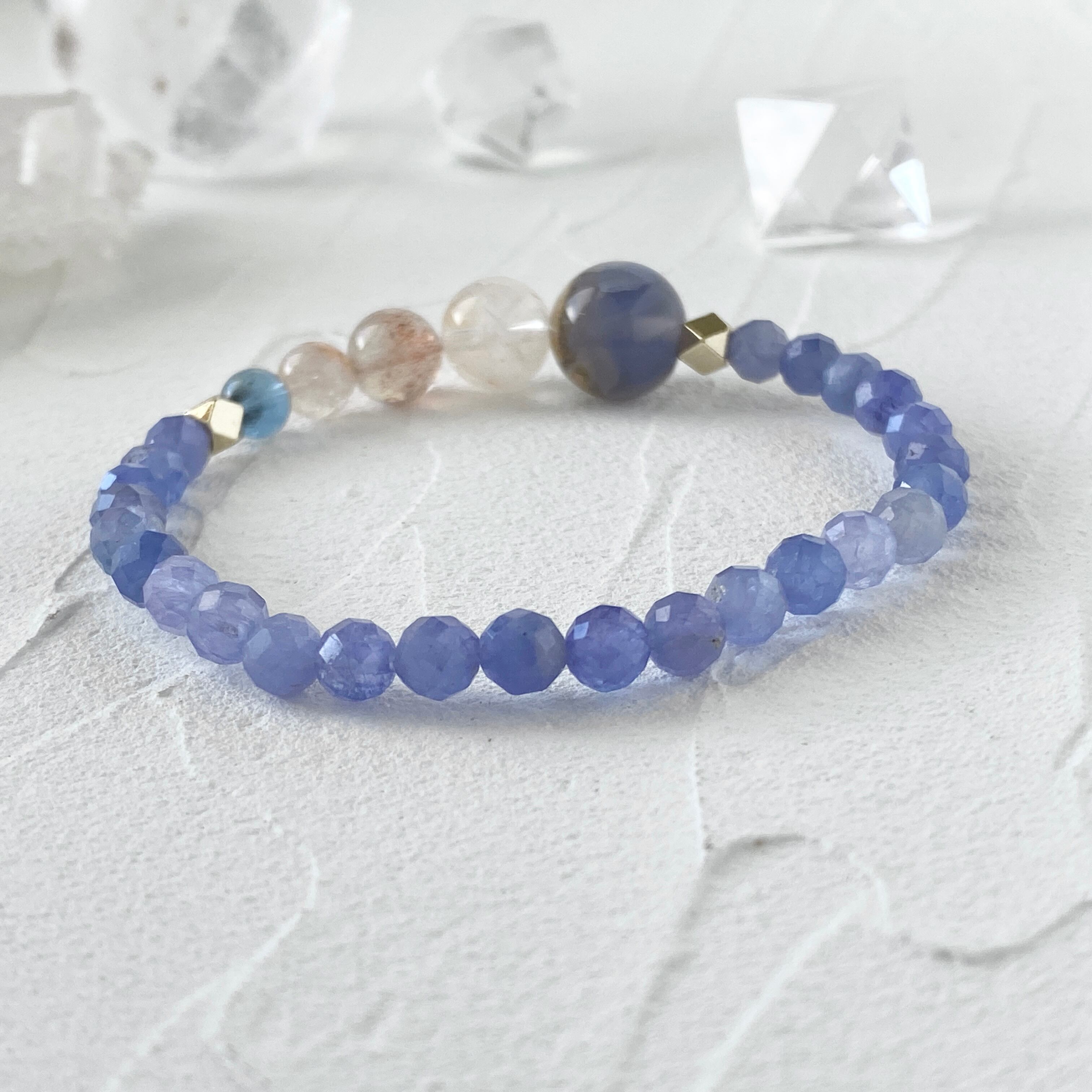 タンザナイト 母岩付ブルーカルセドニー セリサイトインローズ アルーシャサンストーン ミルキーシトリブラックアクアマリン 天然石ブレスレット パワーストーンブレスレット