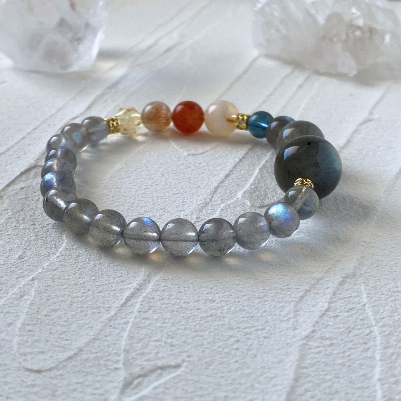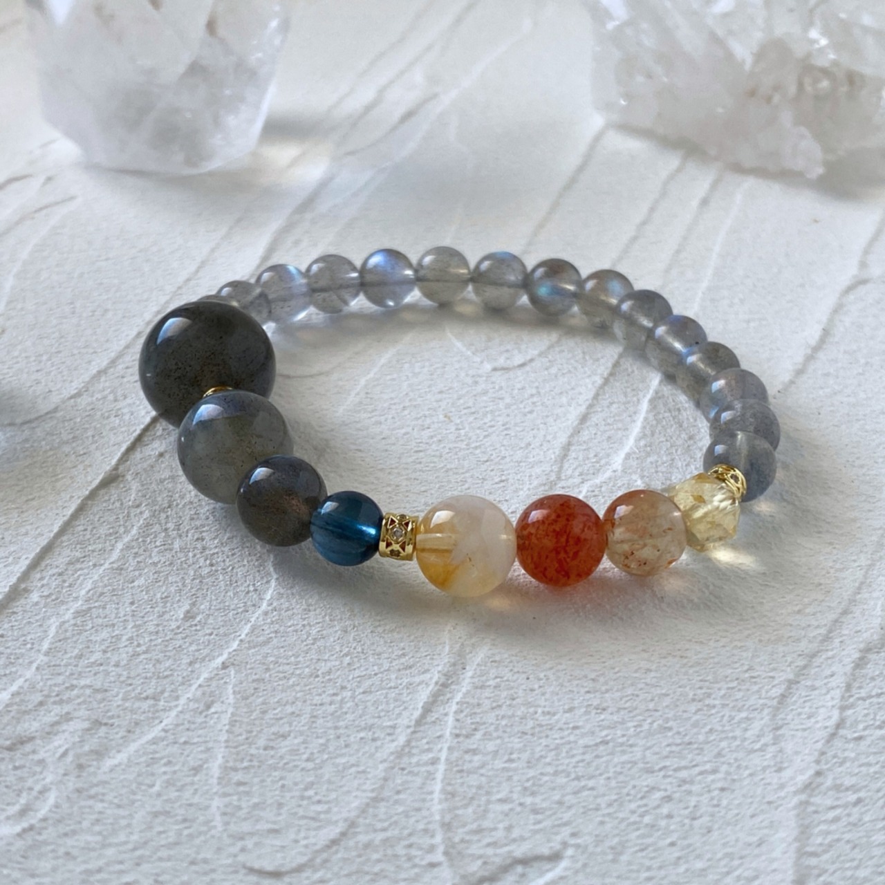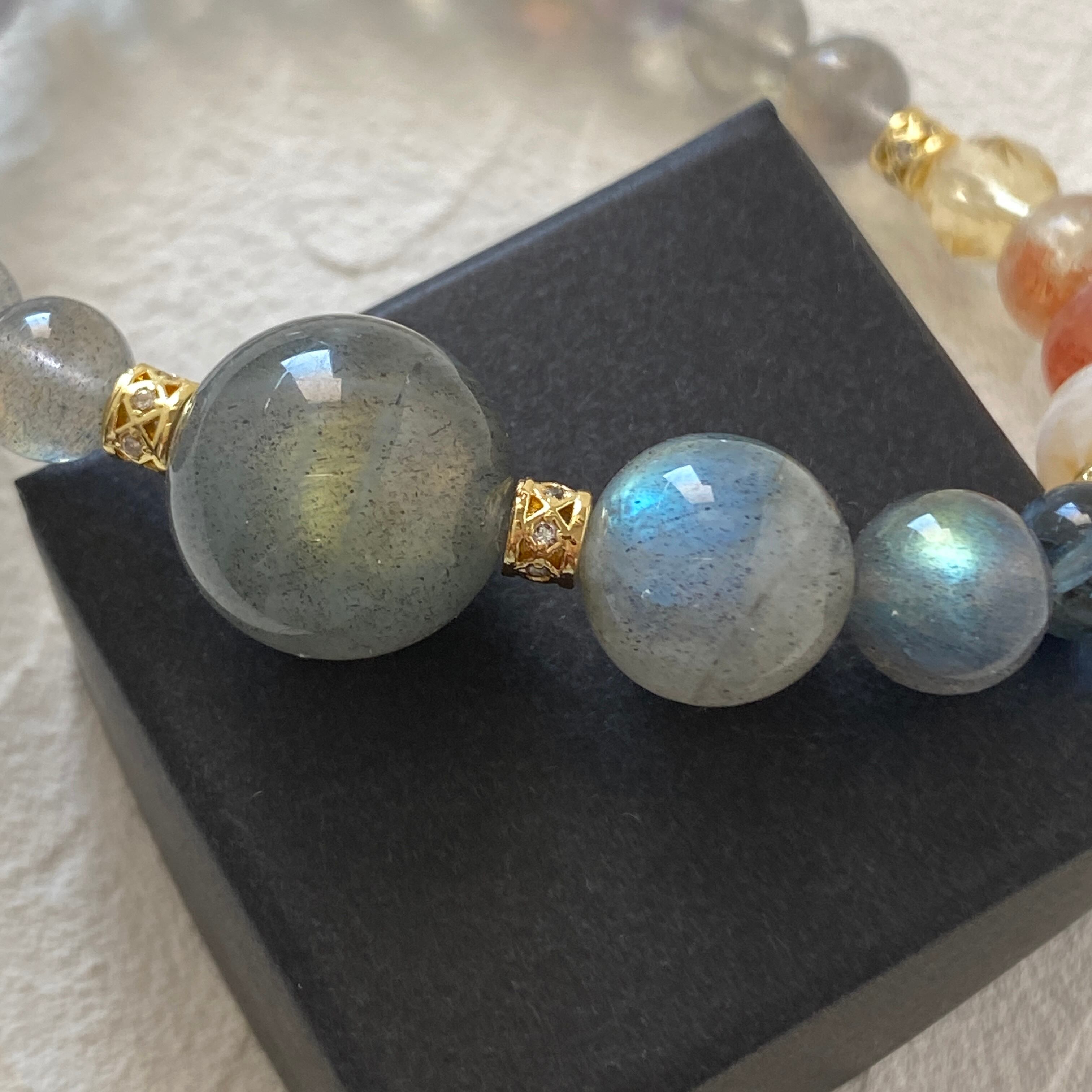 ラブラドライト ディープアクアマリン ミルキーシトリン アルーシャサンストーン シトリン 天然石ブレスレット パワーストーンブレスレット