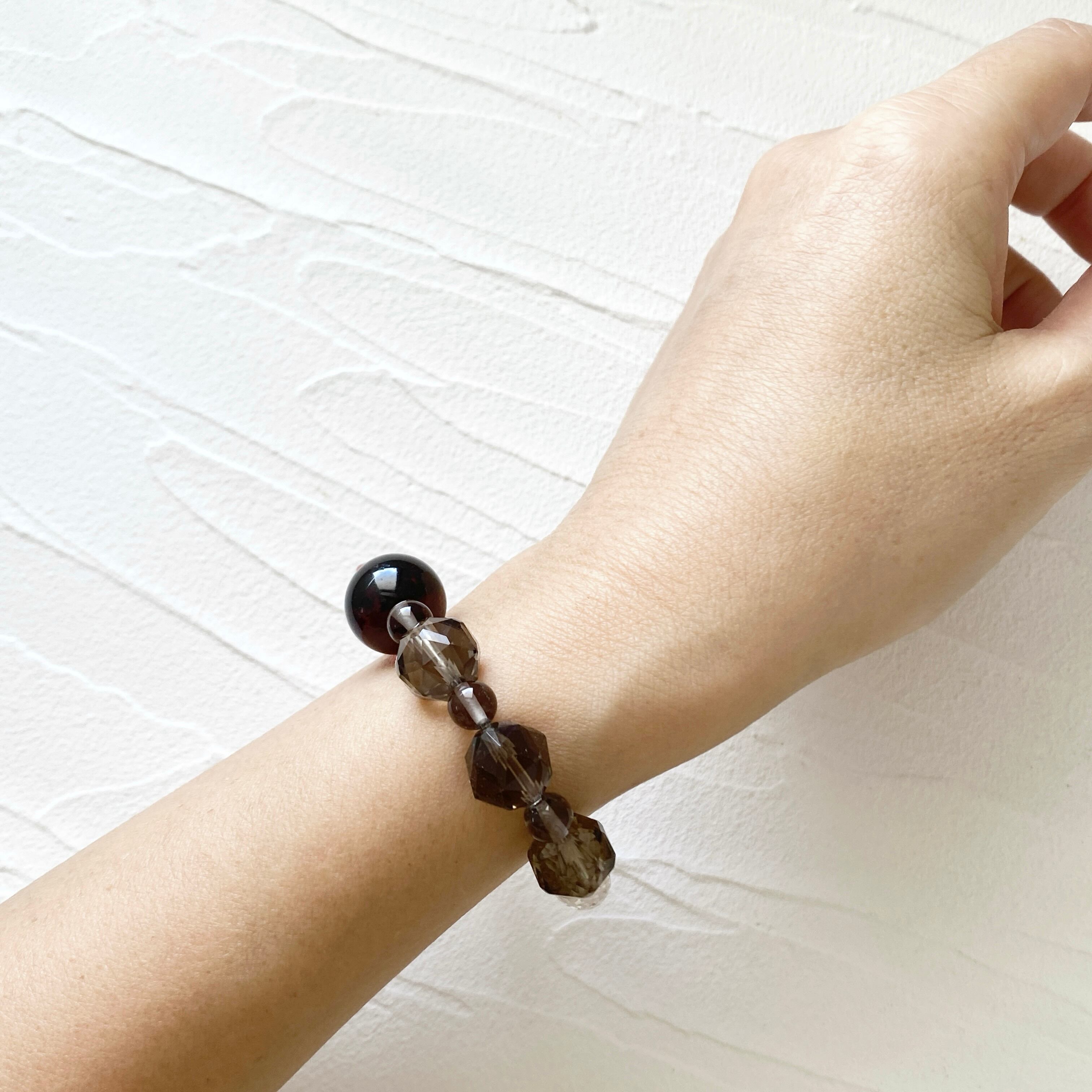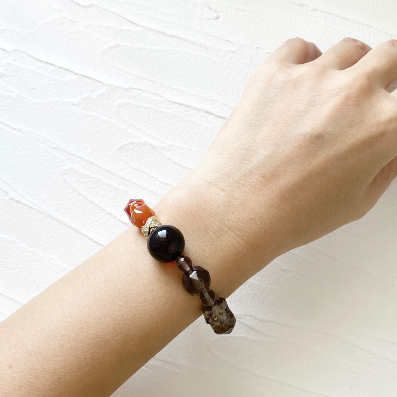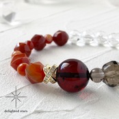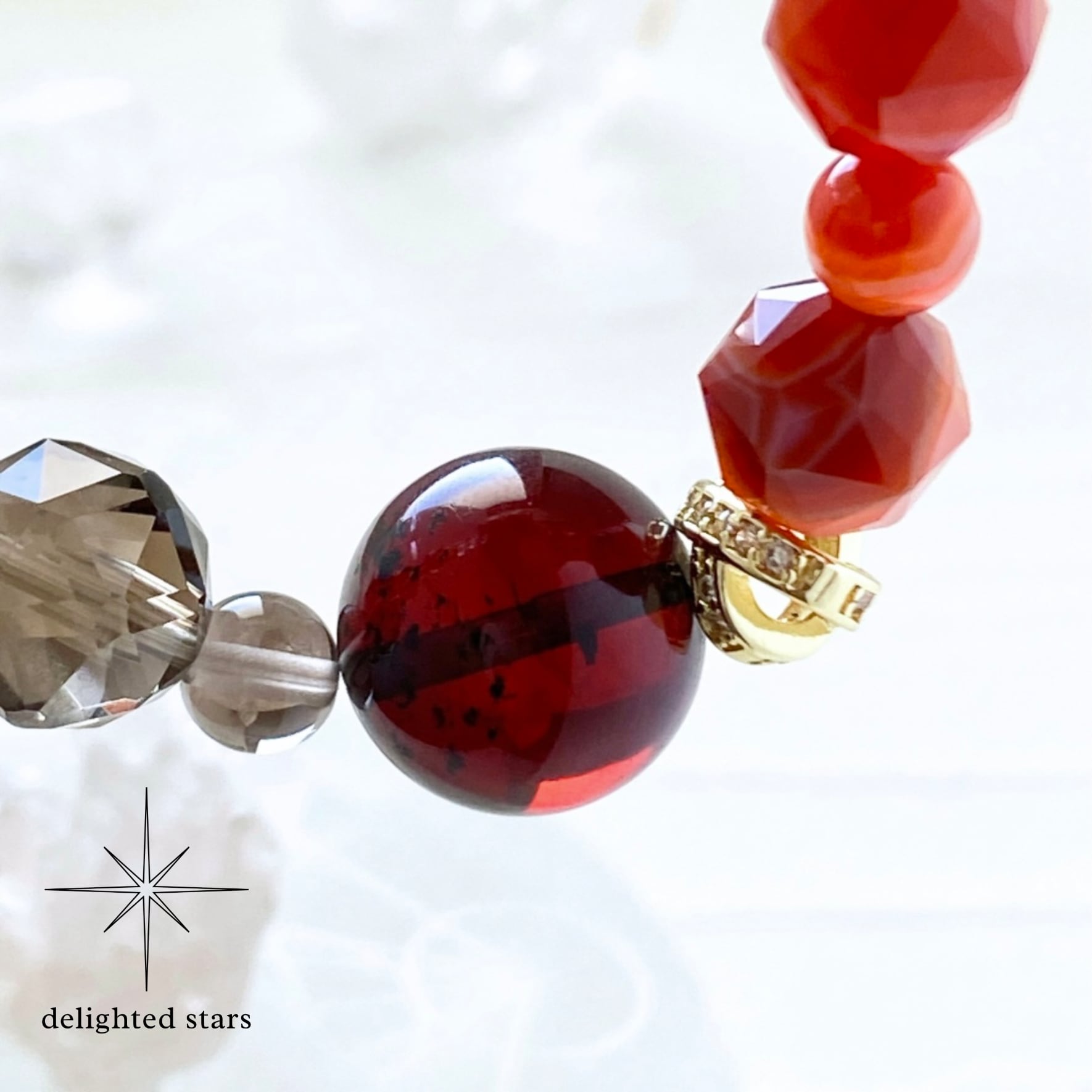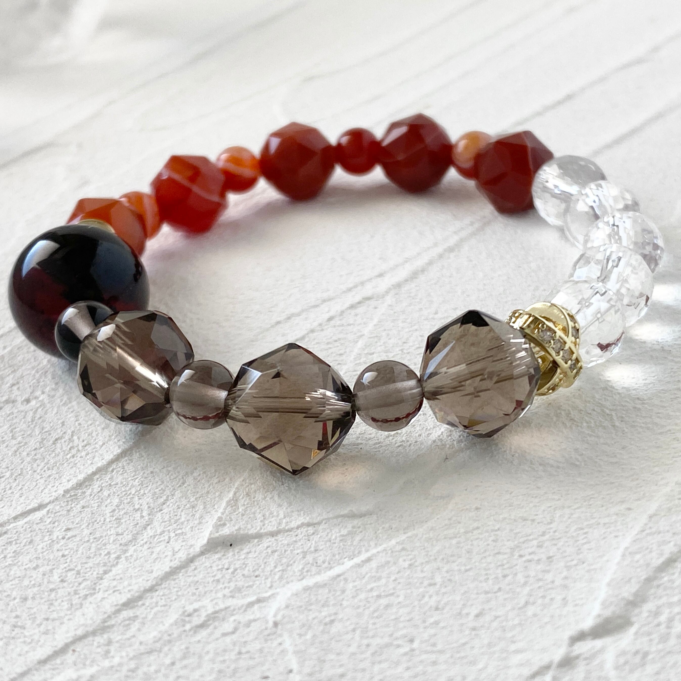 レッドアンバー レッドアゲート スモーキークォーツ 水晶 天然石ブレスレット パワーストーンブレスレット デザインブレスレット