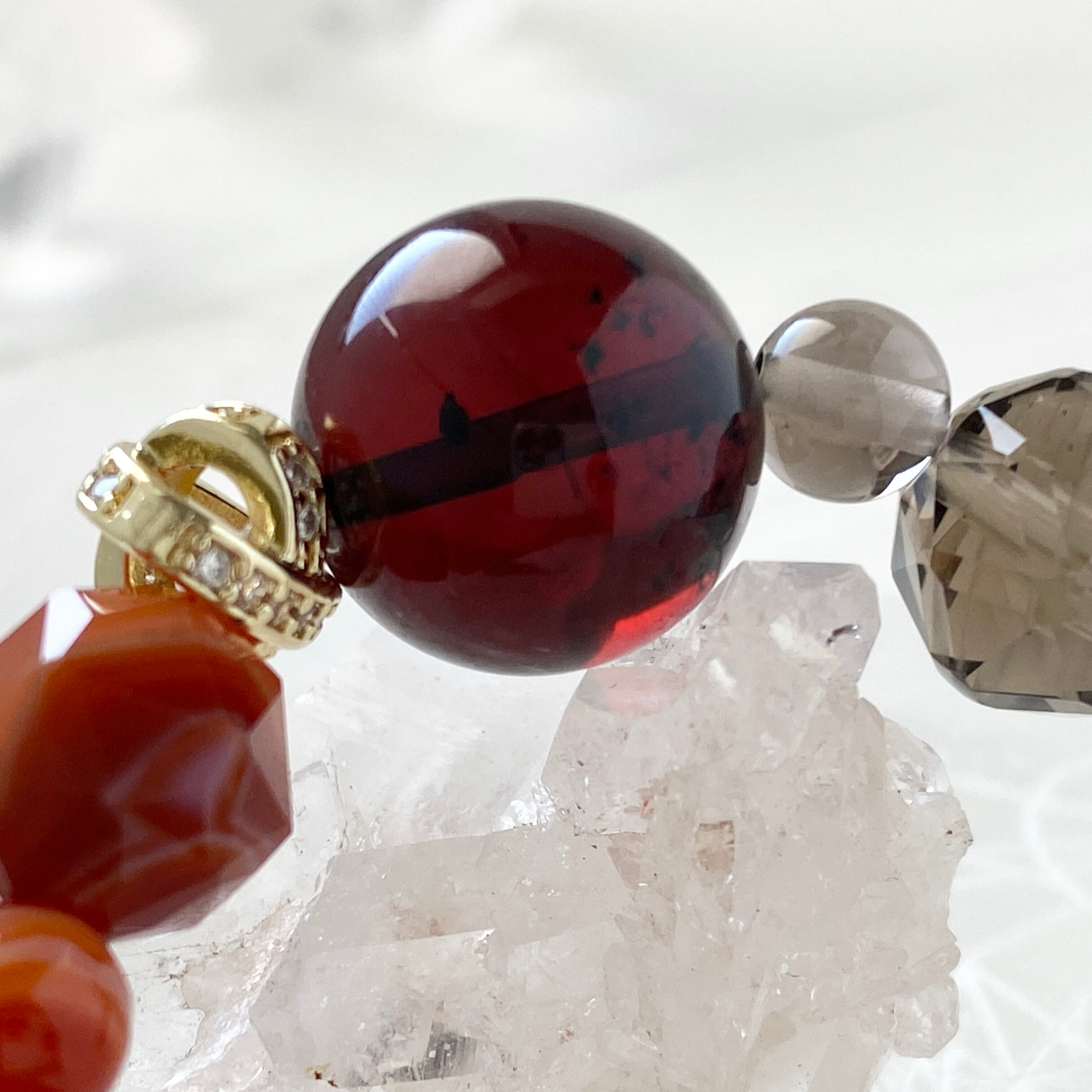 深く艶やかなレッドアンバーが、内側に燃える炎のような強さをもたらすブレスレット