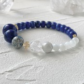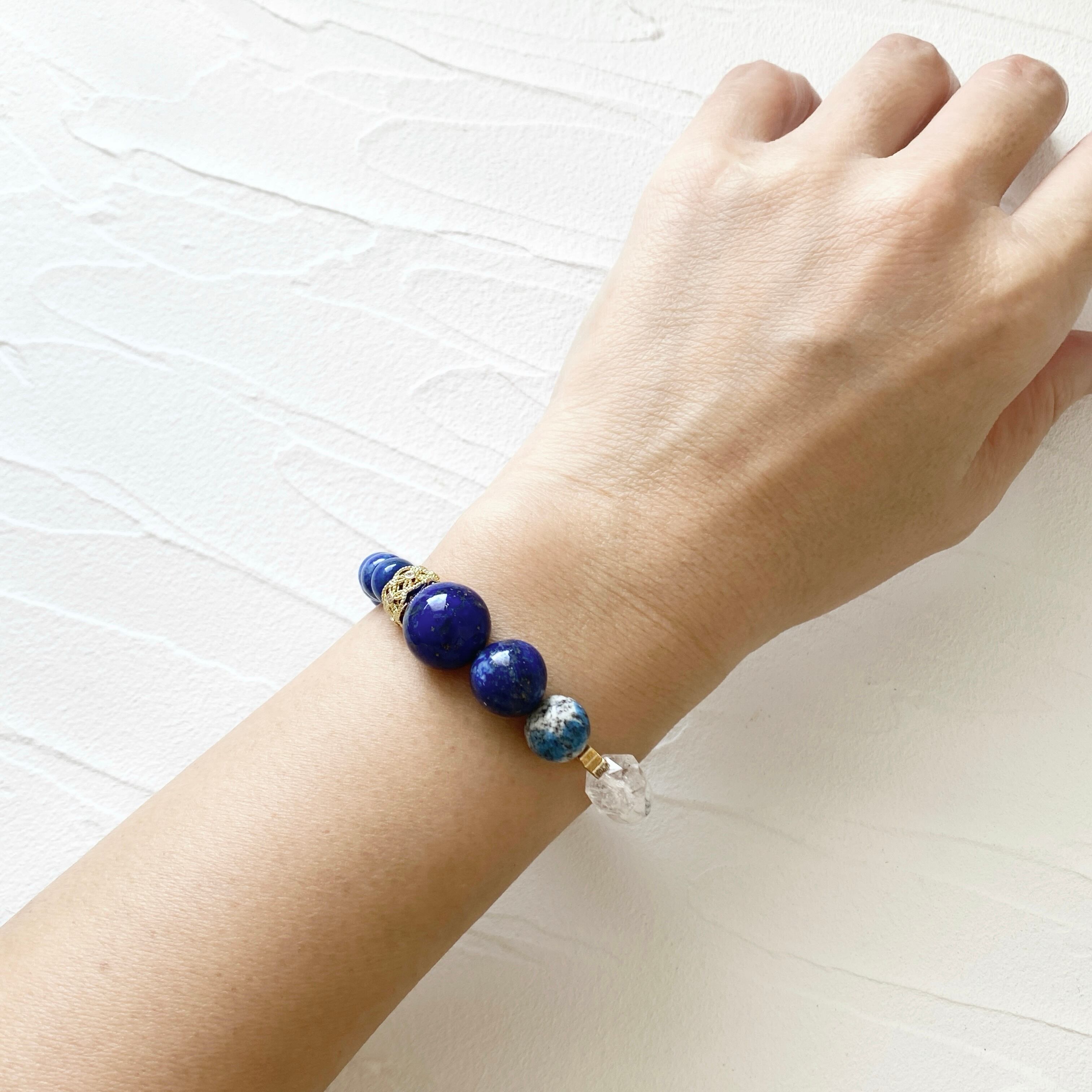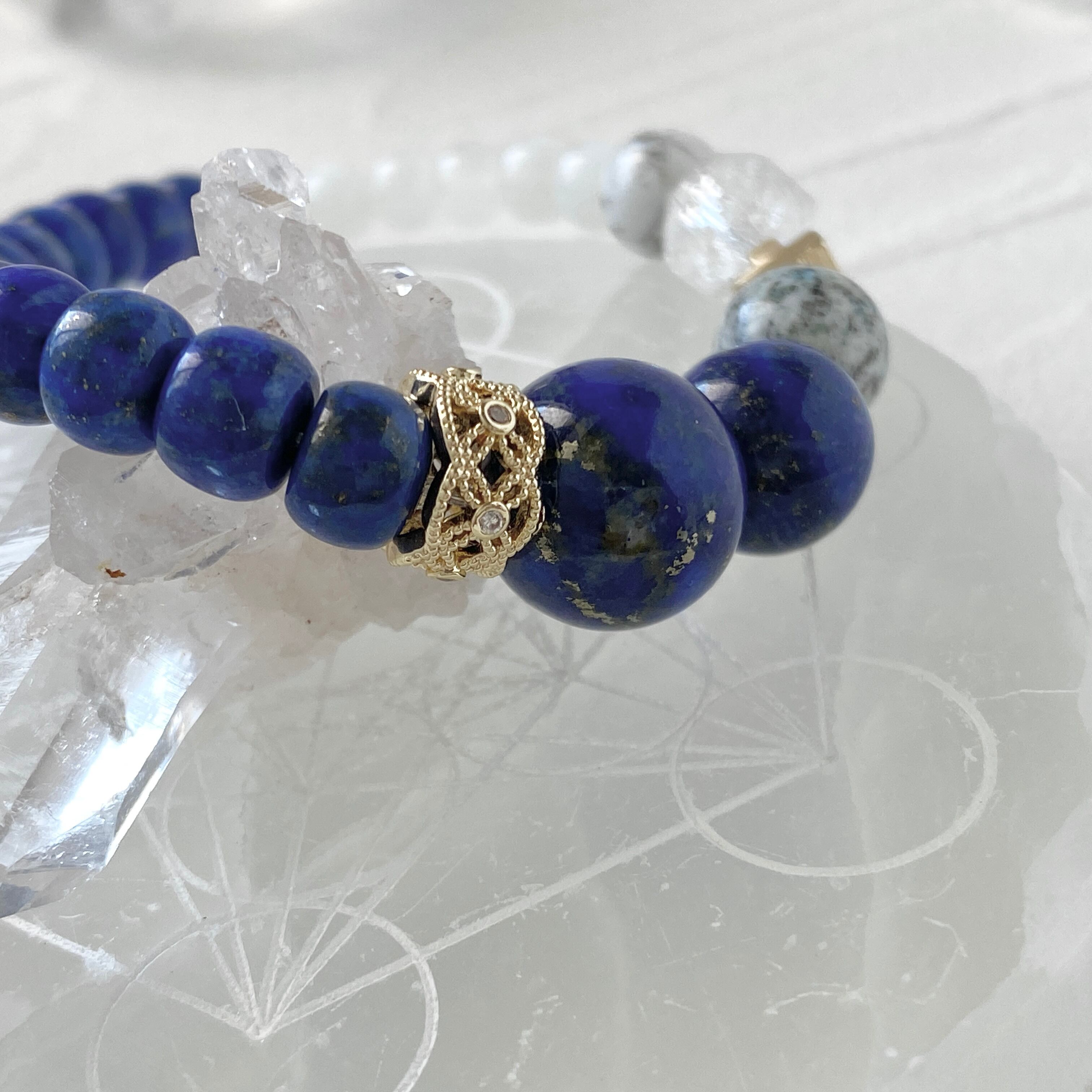 神聖な夜の静寂の中、感覚を研ぎ澄ますと聞こえてくる「内なる導き」を表しているようなブレスレットになりました。