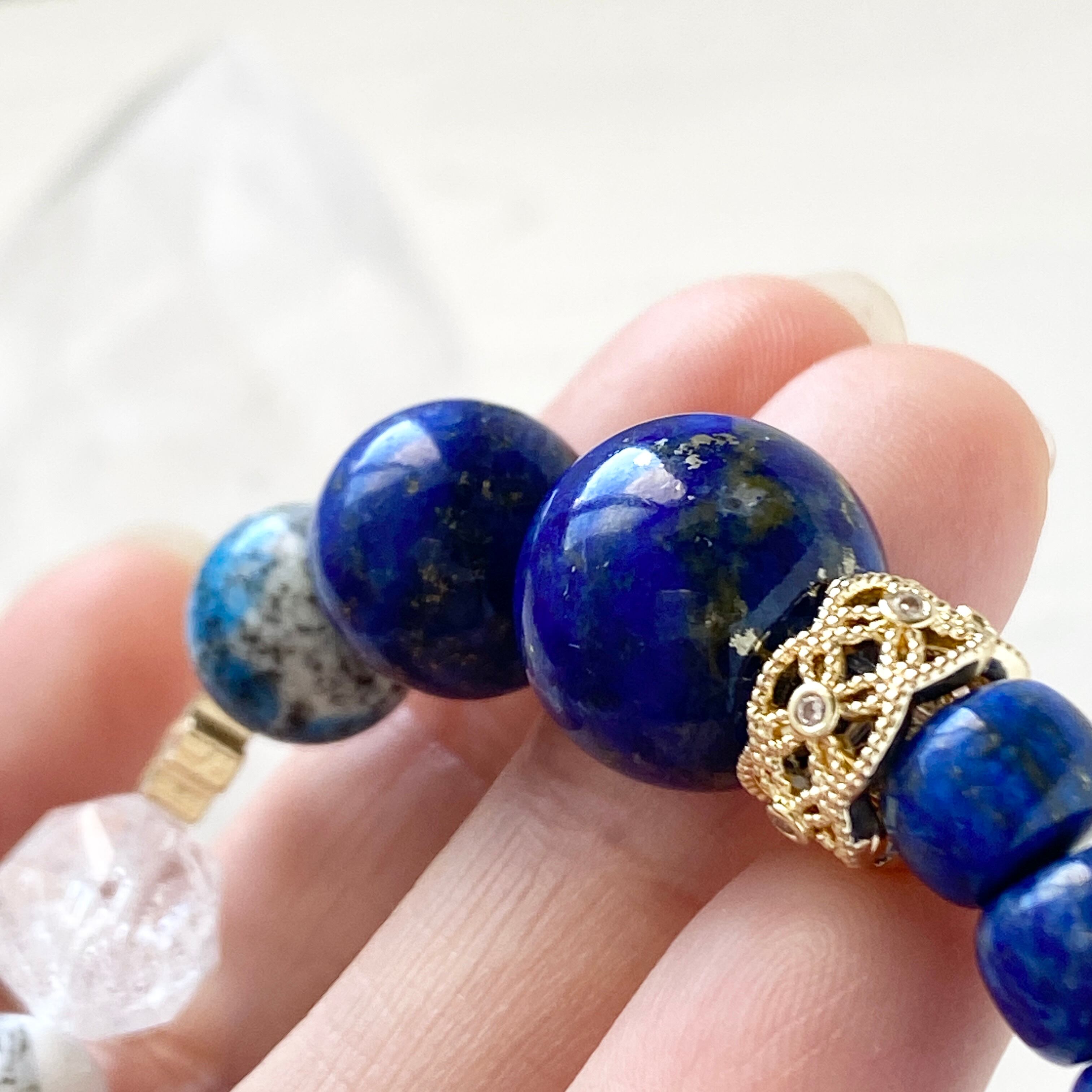 ラピスラズリ K2ストーン アイリス水晶 ホワイトオパール ムーンストーン 天然石ブレスレット パワーストーンブレスレット デザインブレスレット