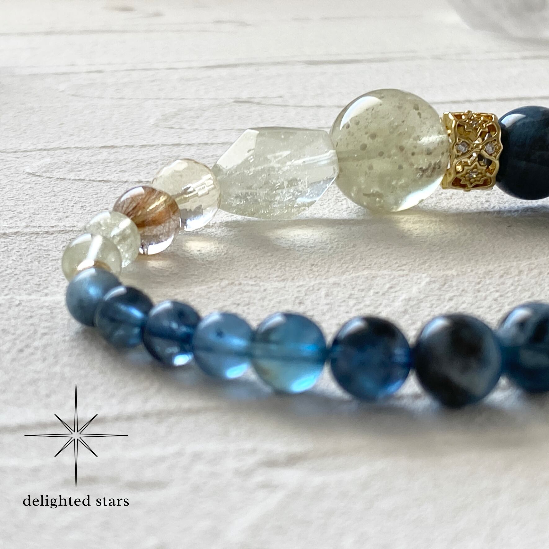 【宇宙】リビアングラス ブラックアクアマリン マトリックスアクアマリン ゴールドルチルクォーツ シトリン 天然石ブレスレット デザインブレスレット