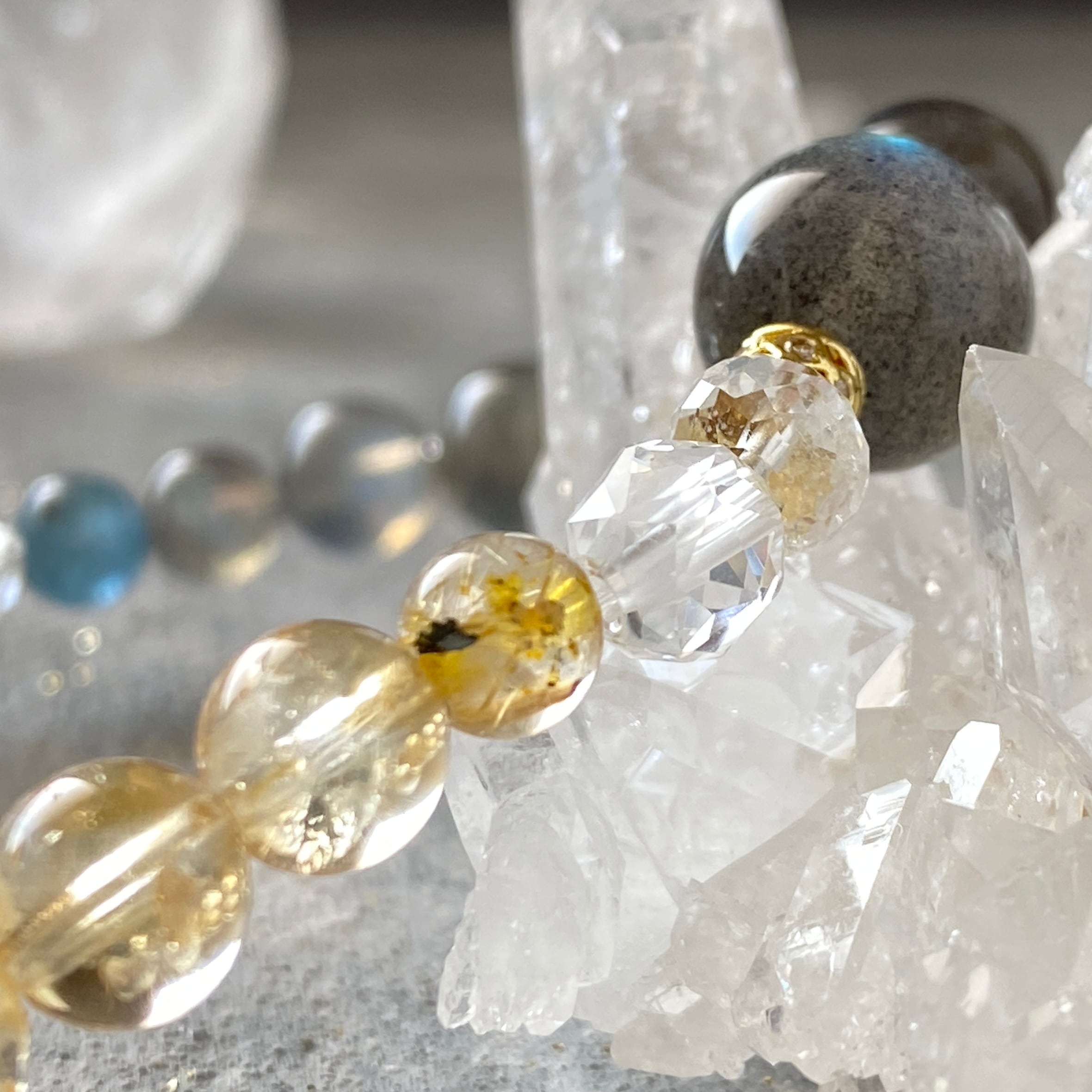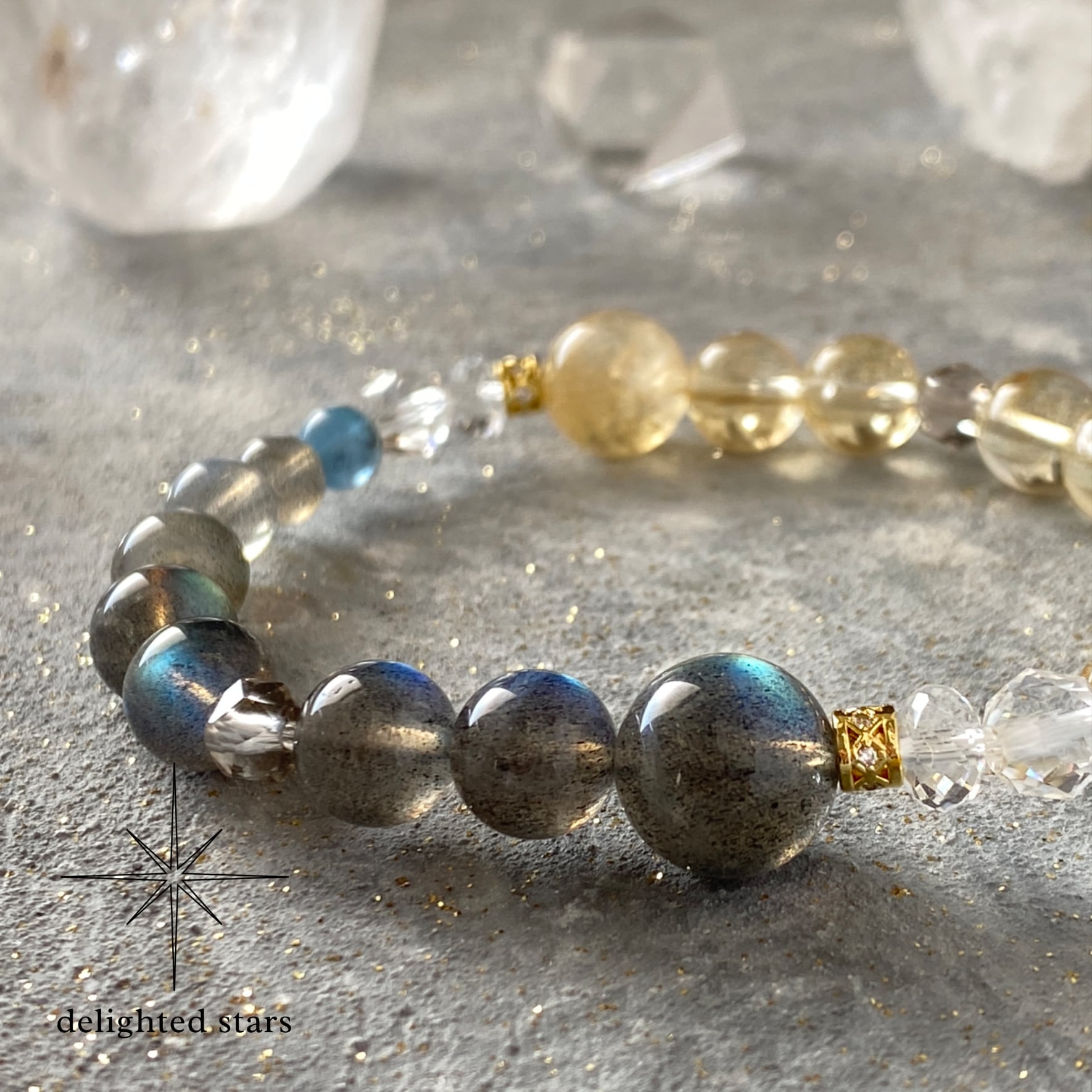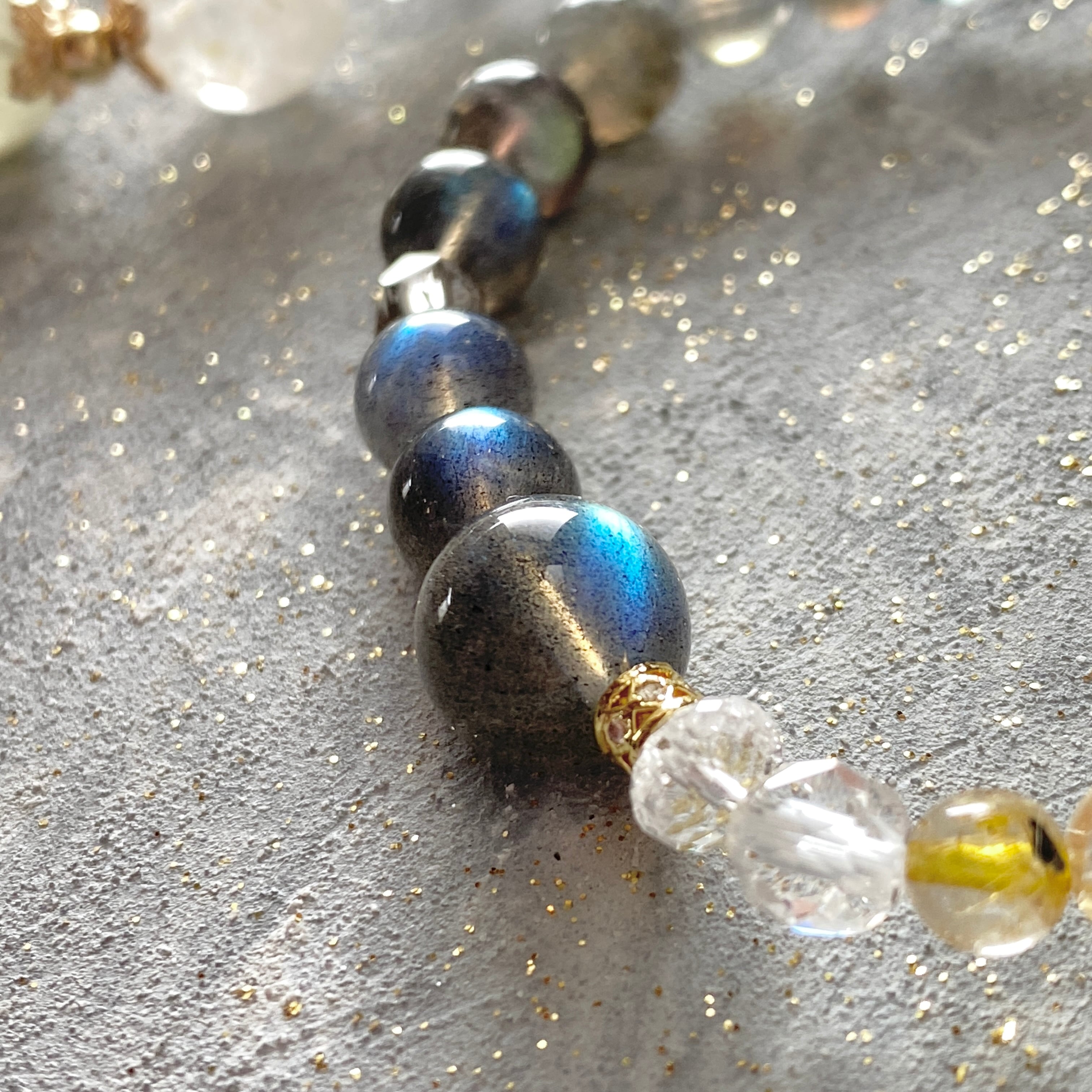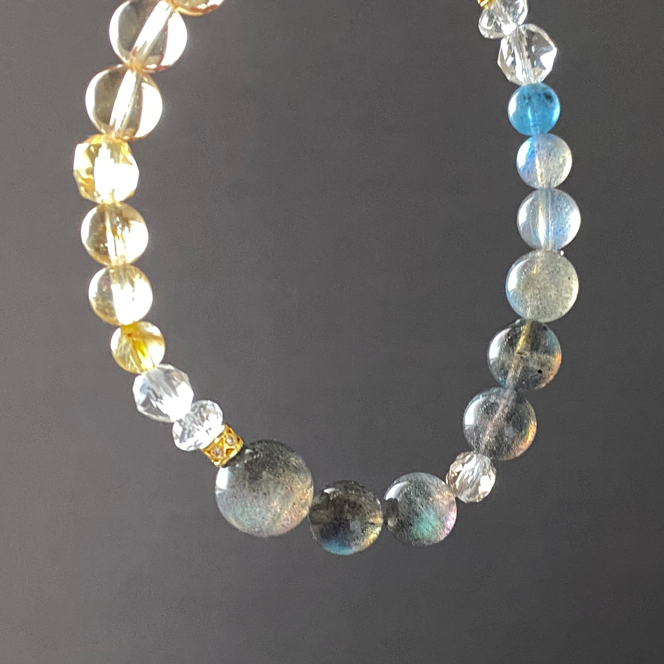 【陰と陽】ラブラドライト シトリン ルチルインクォーツ スモーキークォーツ ブラックアクアマリン 天然石ブレスレット パワーストーンブレスレット デザインブレスレット
