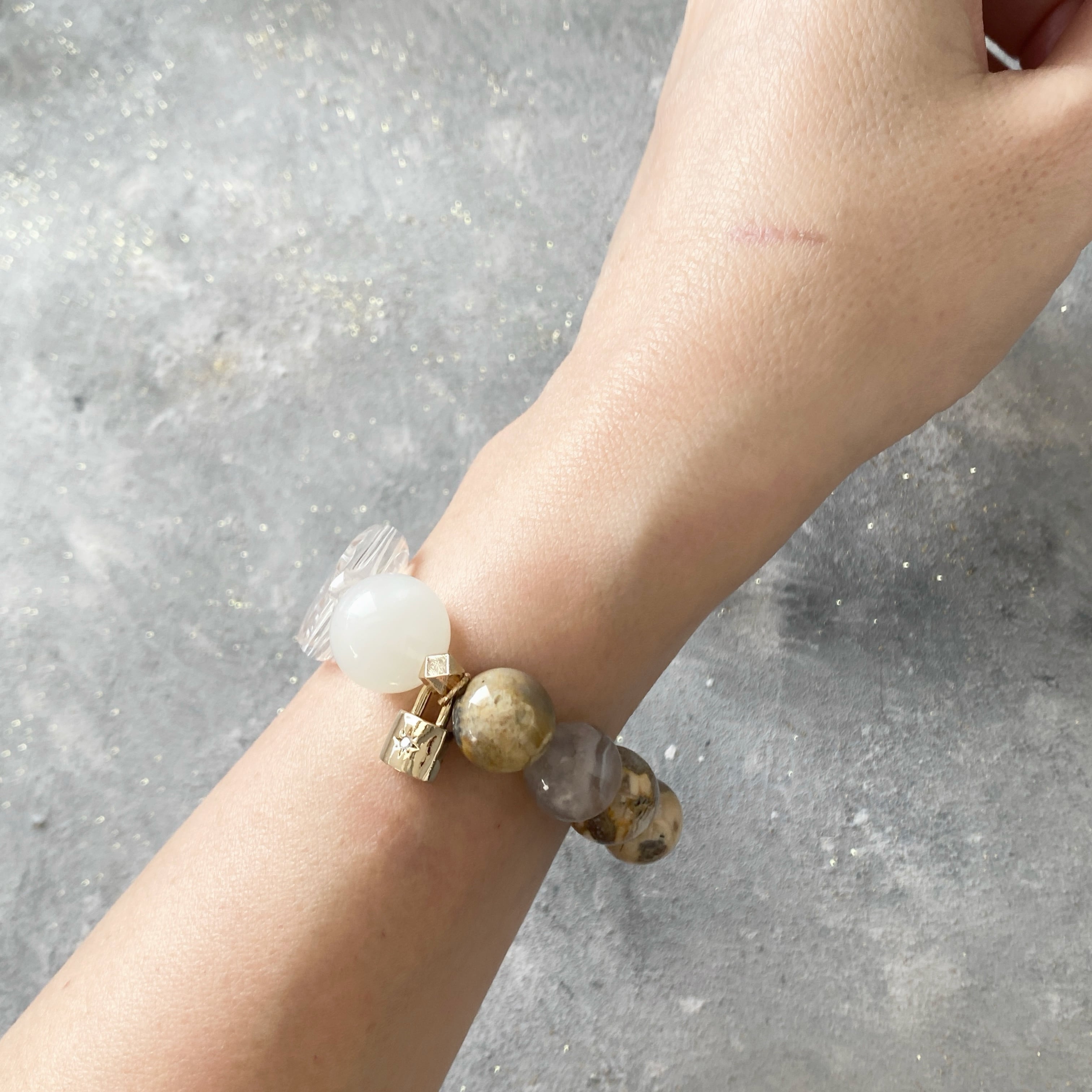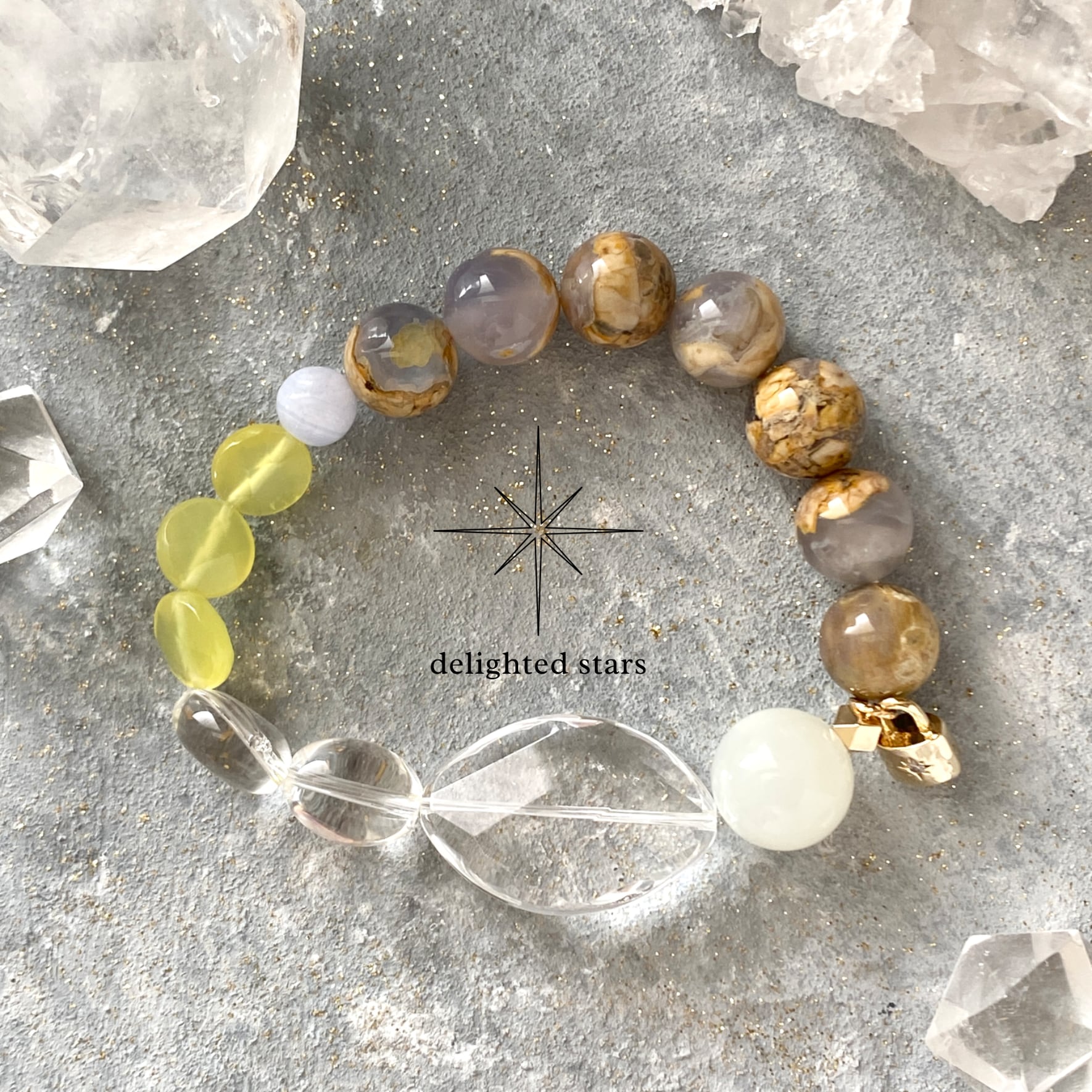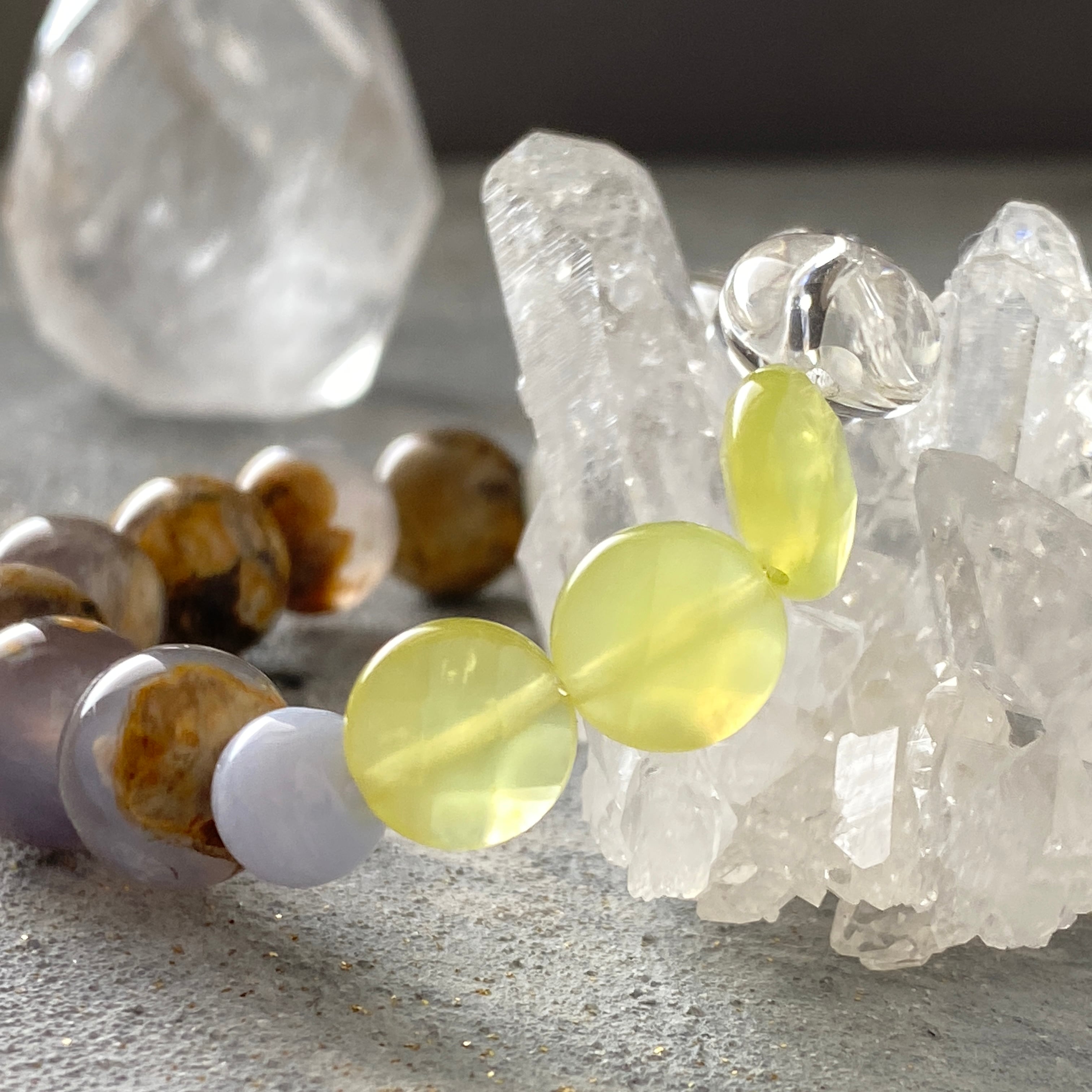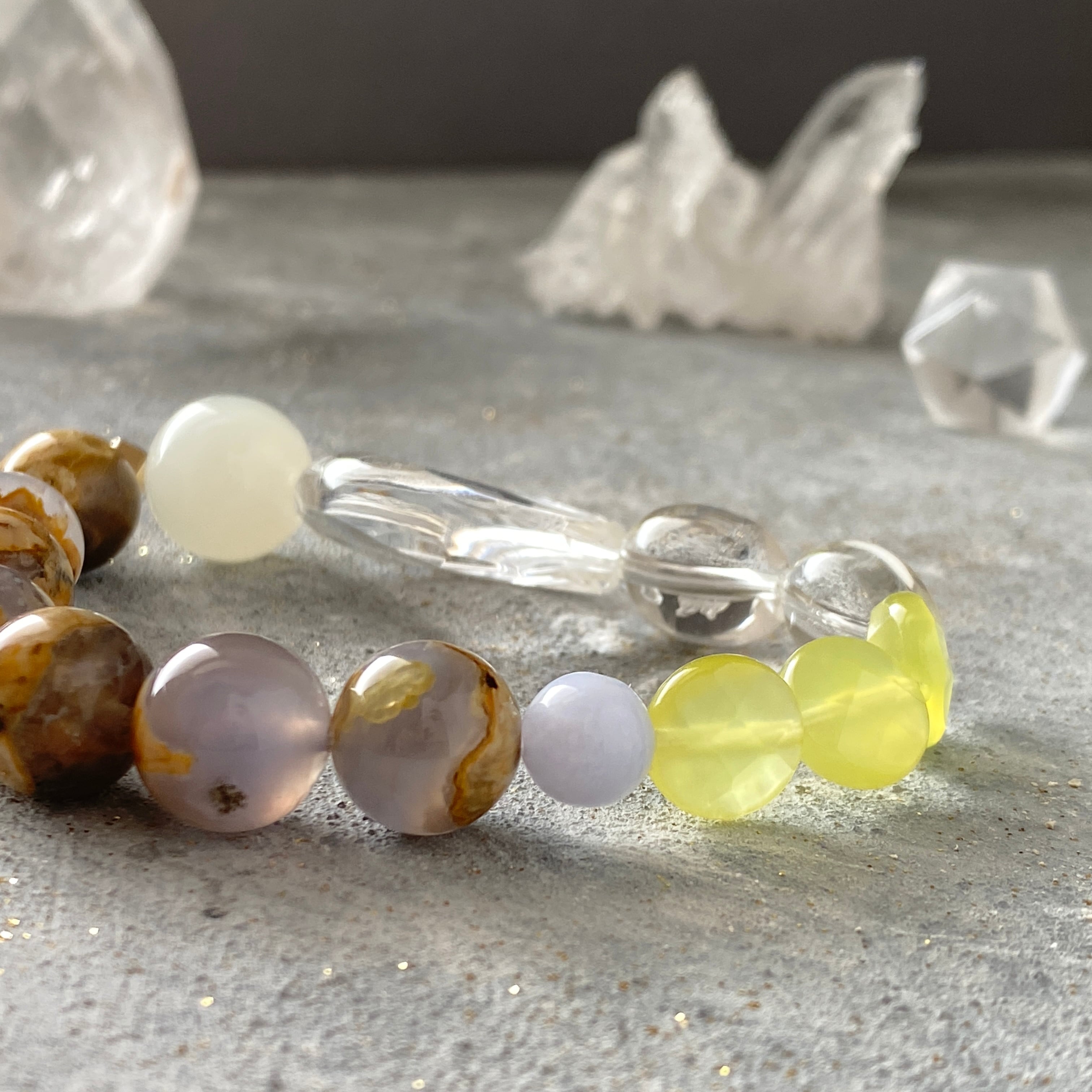 【力を抜く】母岩付きカルセドニー サーペンティン ムーンストーン ブルーレースアゲート 天然石ブレスレット パワーストーンブレスレット デザインブレスレット