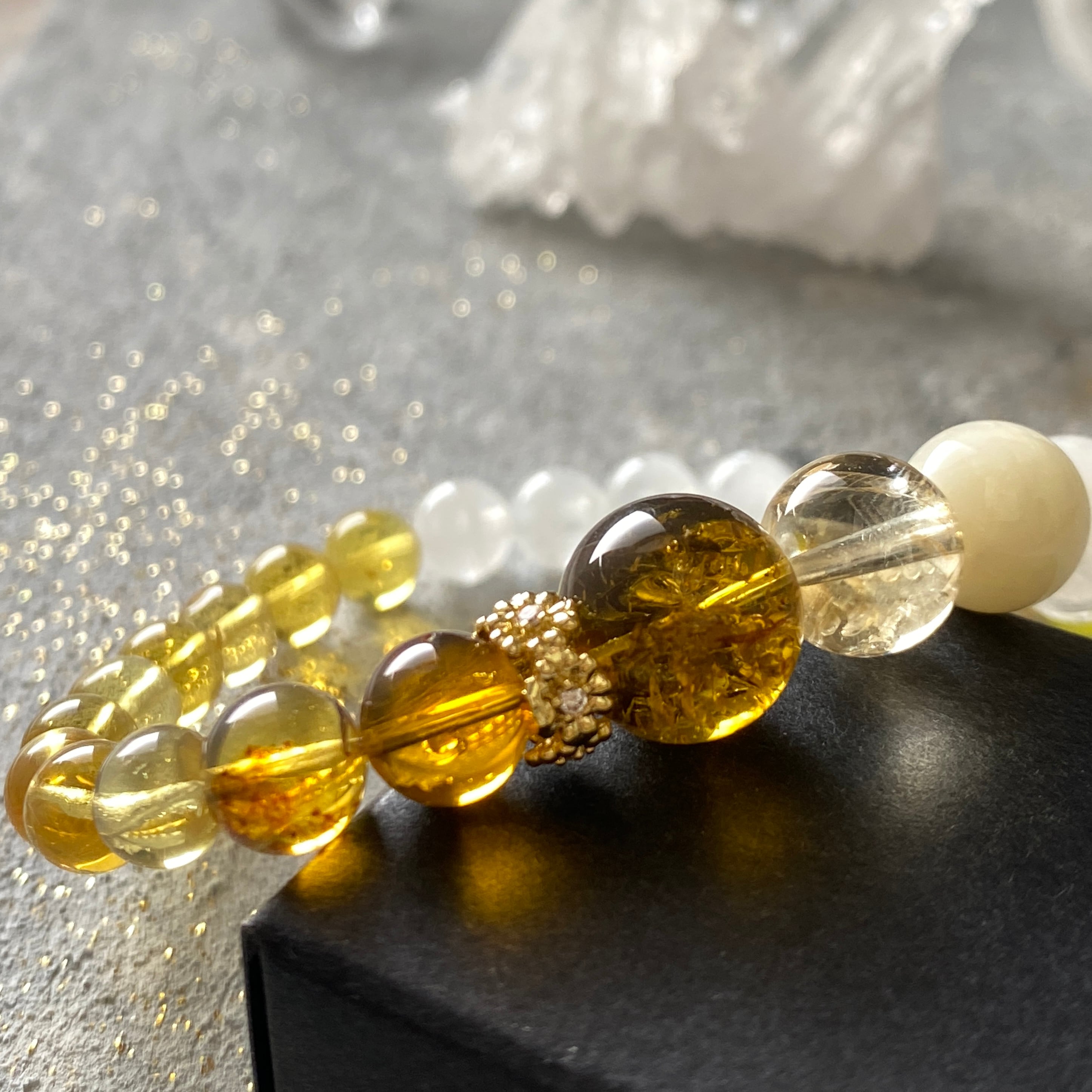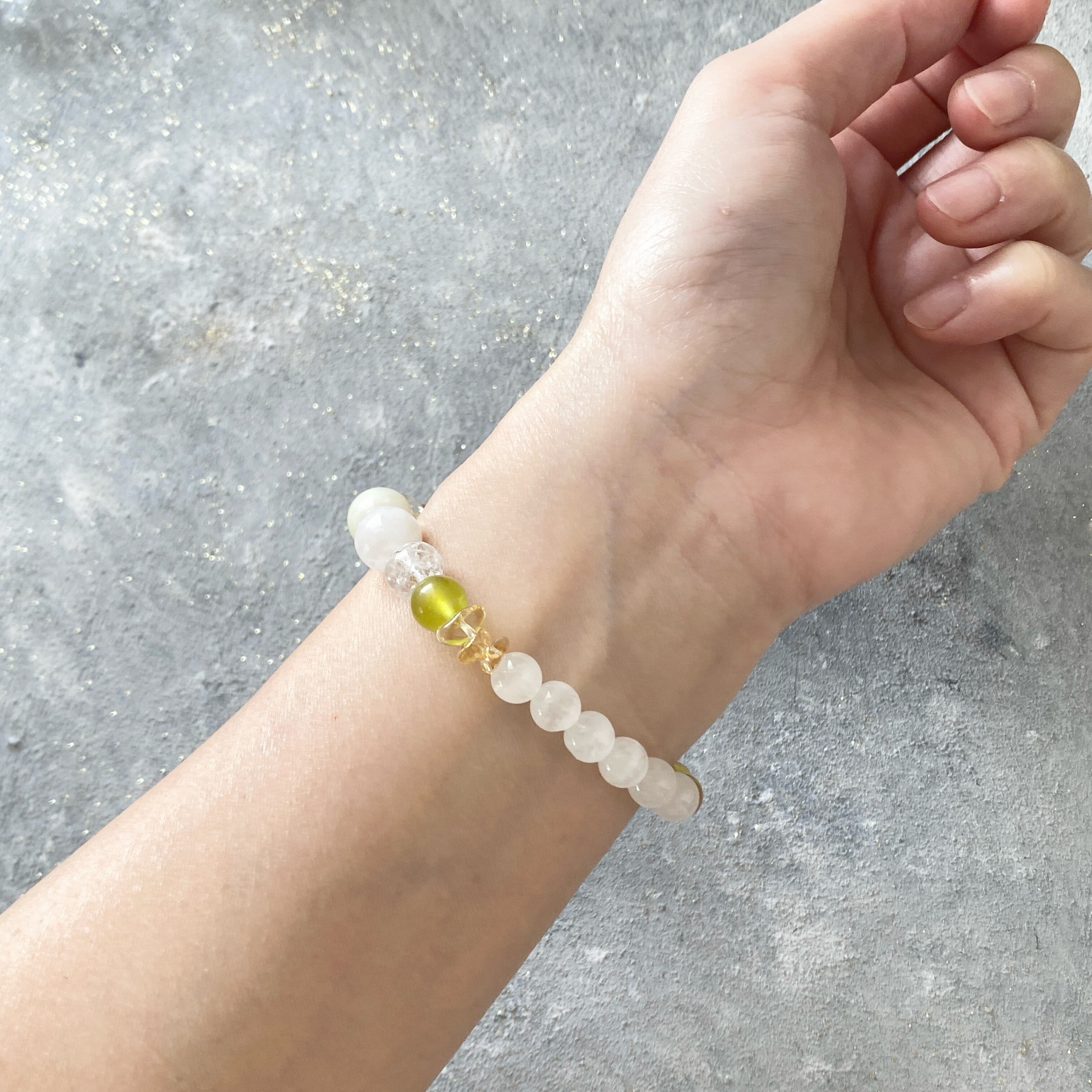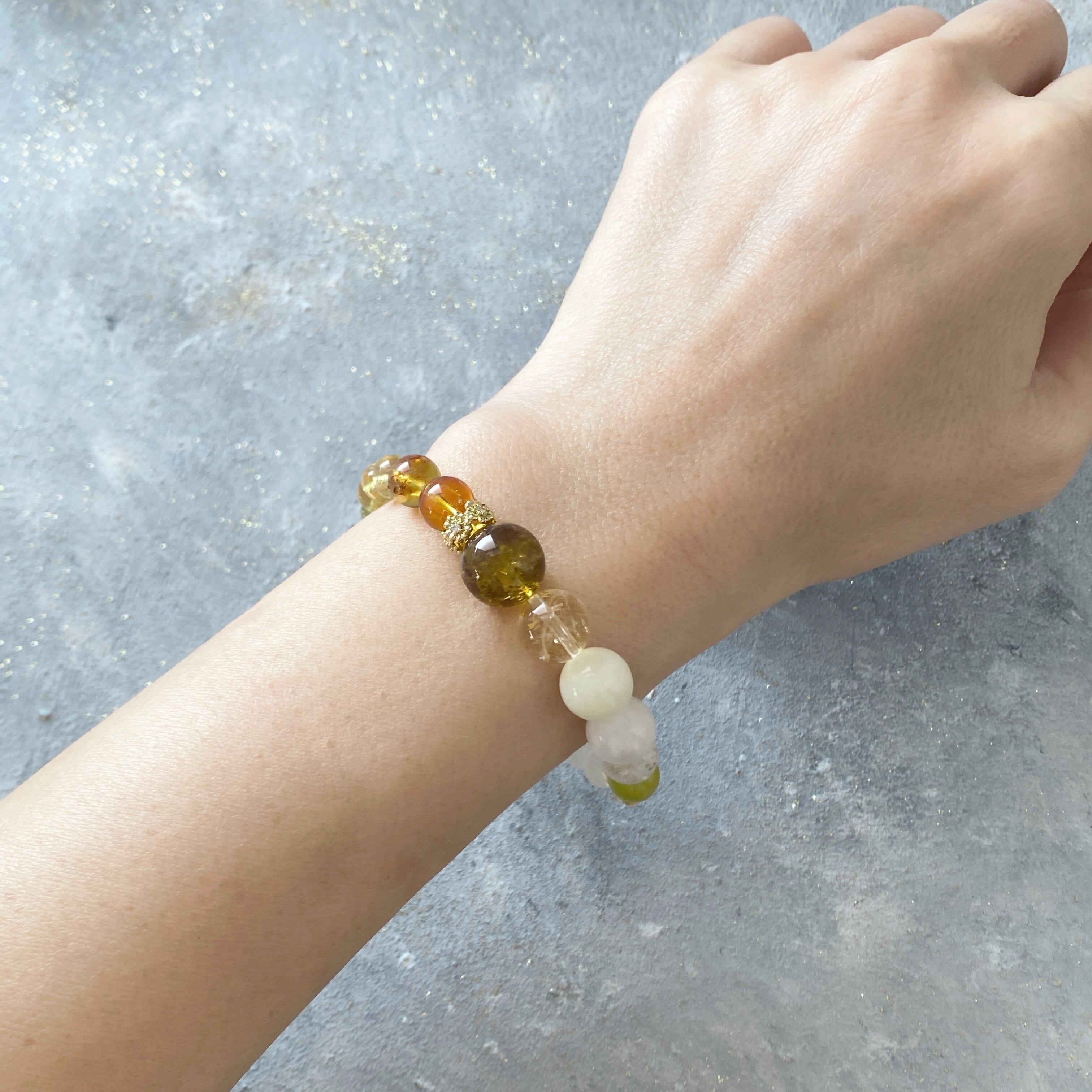 【うりずんの光】ブルーアンバー ホワイトガーデンファントム アイリスシトリン イエローベリル サーペンティン 天然石ブレスレット パワーストーンブレスレット デザインブレスレット