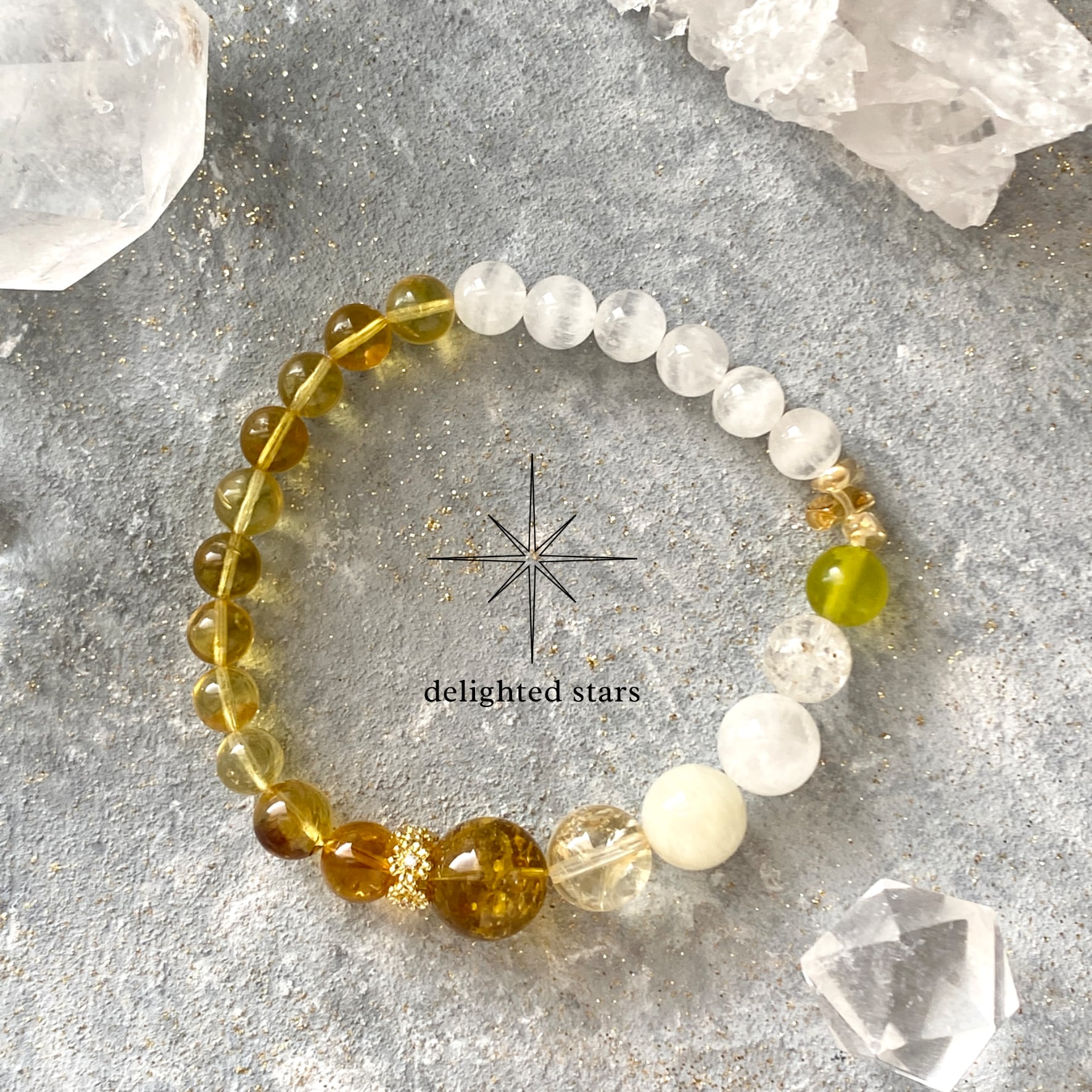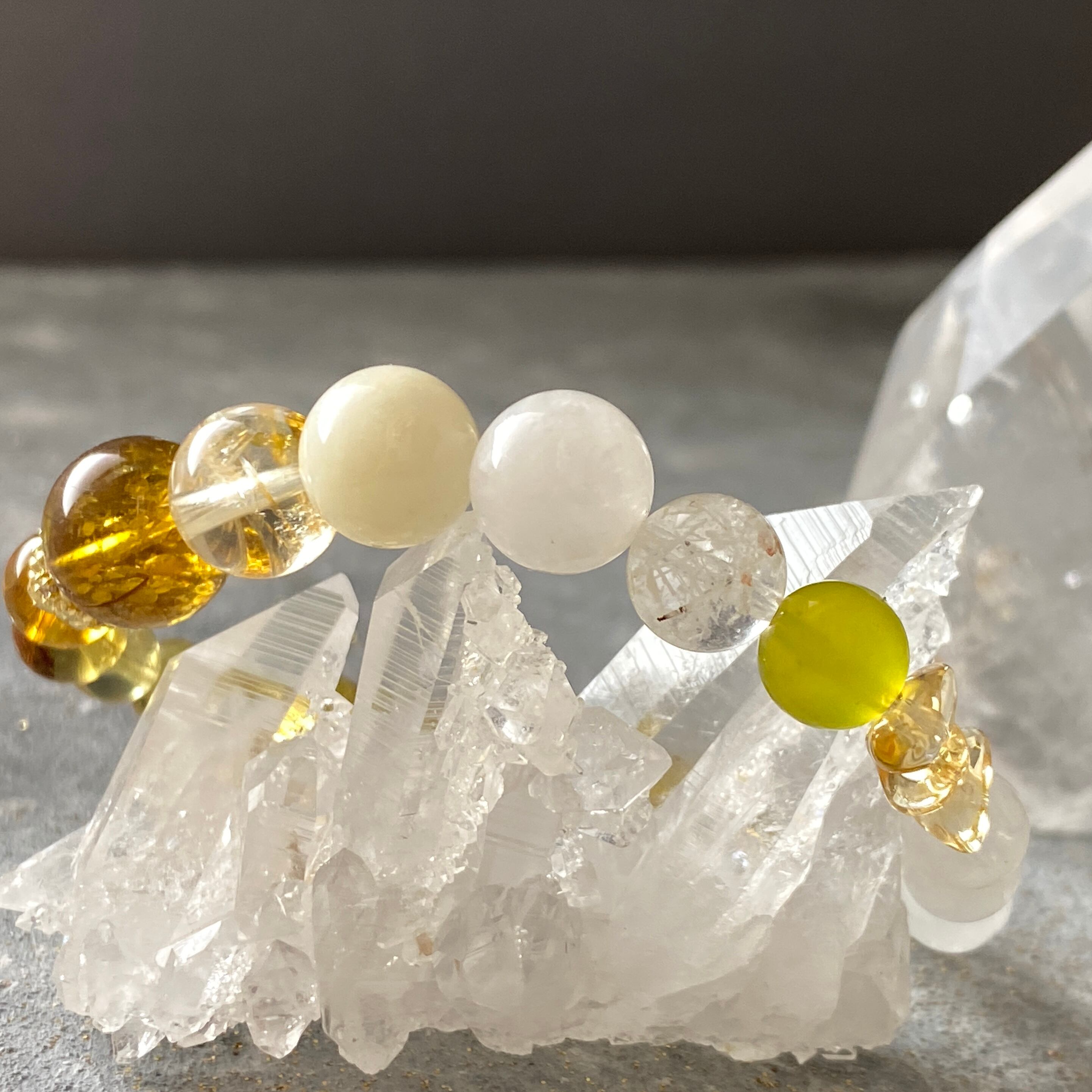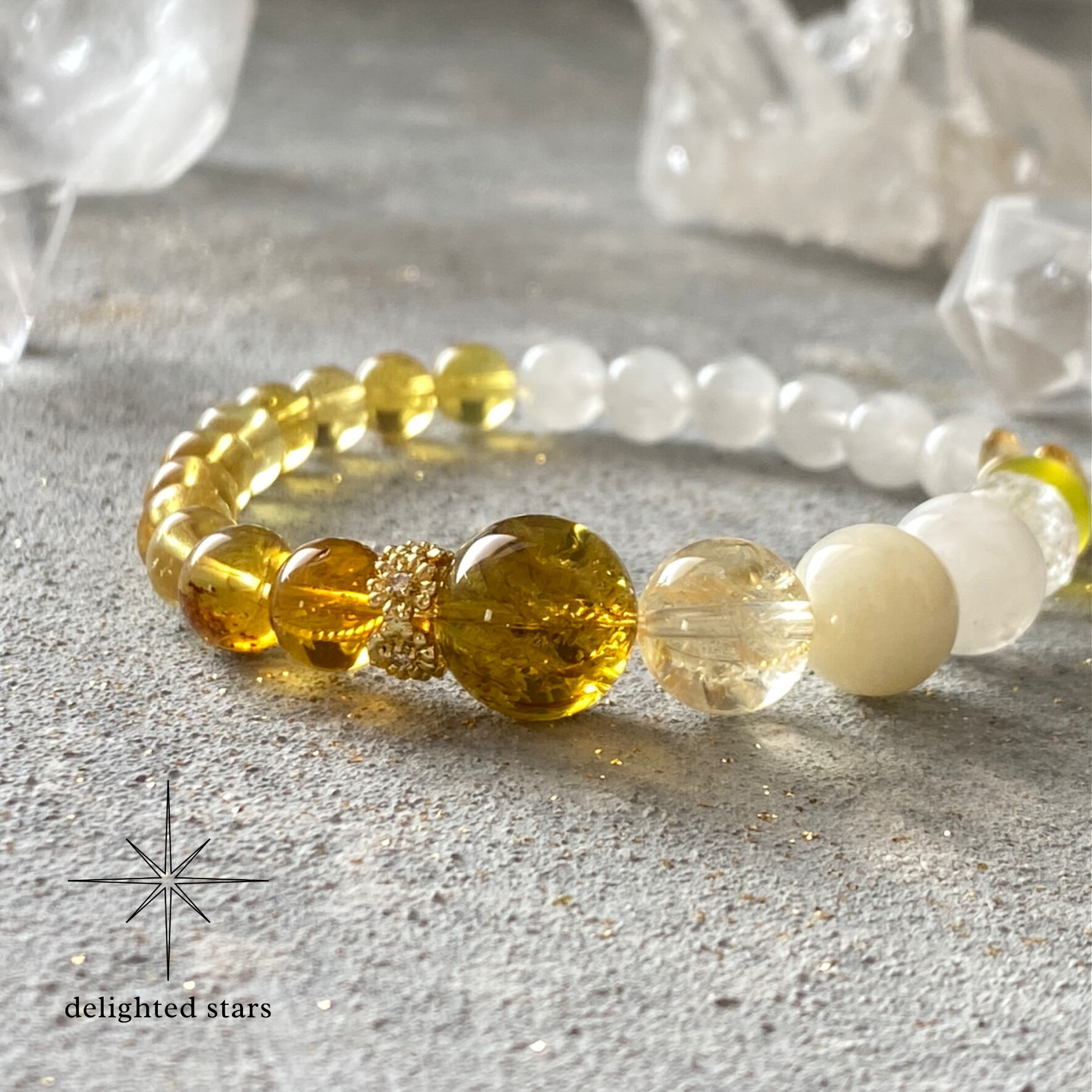 【うりずんの光】ブルーアンバー ホワイトガーデンファントム アイリスシトリン イエローベリル サーペンティン 天然石ブレスレット パワーストーンブレスレット デザインブレスレット