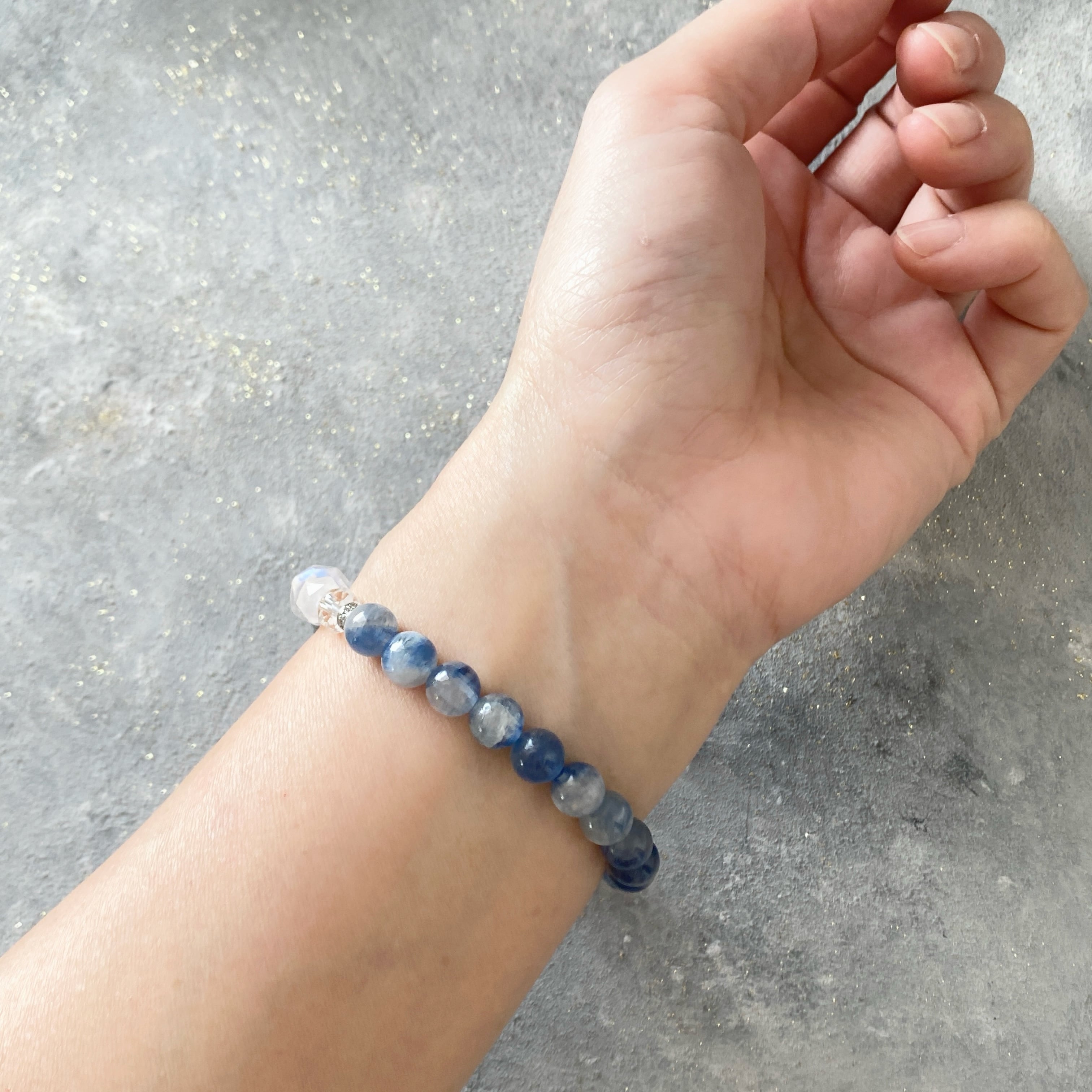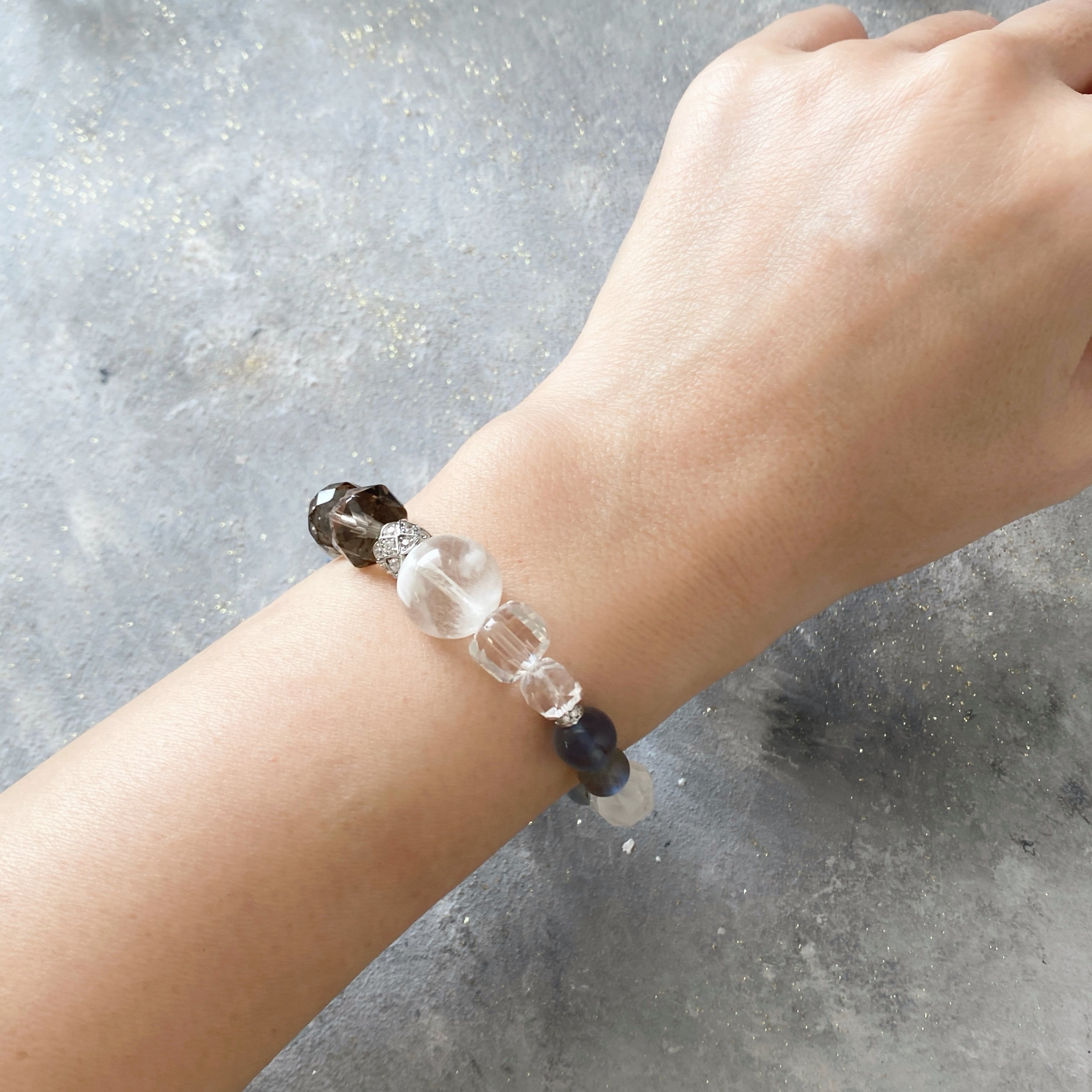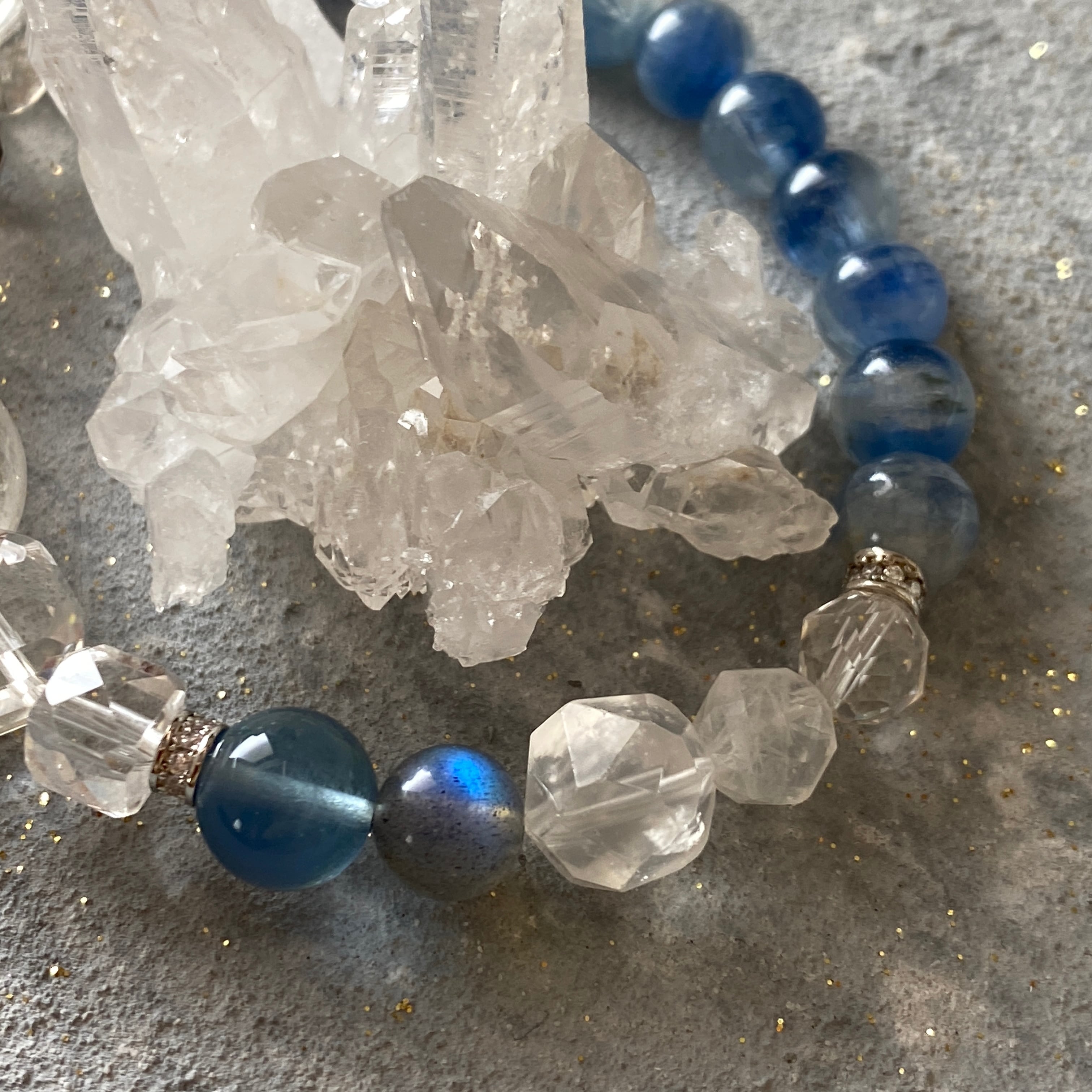 【青を貫く】カイヤナイト セリサイトインクォーツ スモーキークォーツ 水晶キューブカット ブルーフローライト ラブラドライト ペリステライト 天然石ブレスレット パワーストーンブレスレット デザインブレスレット