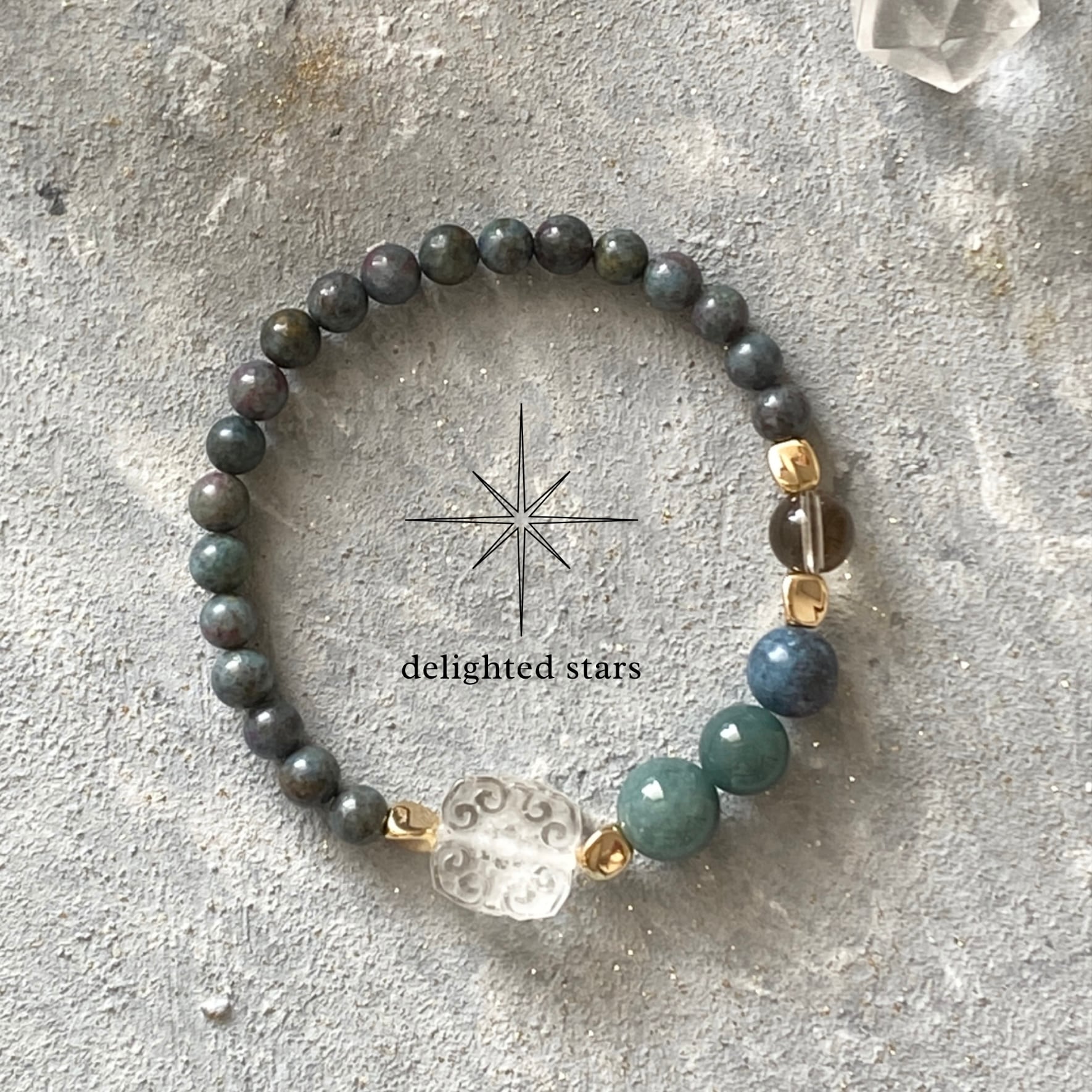 【意のままに】ルビーインカイヤナイト 如意水晶 翡翠 スモーキークォーツ 天然石ブレスレット パワーストーンブレスレット デザインブレスレット