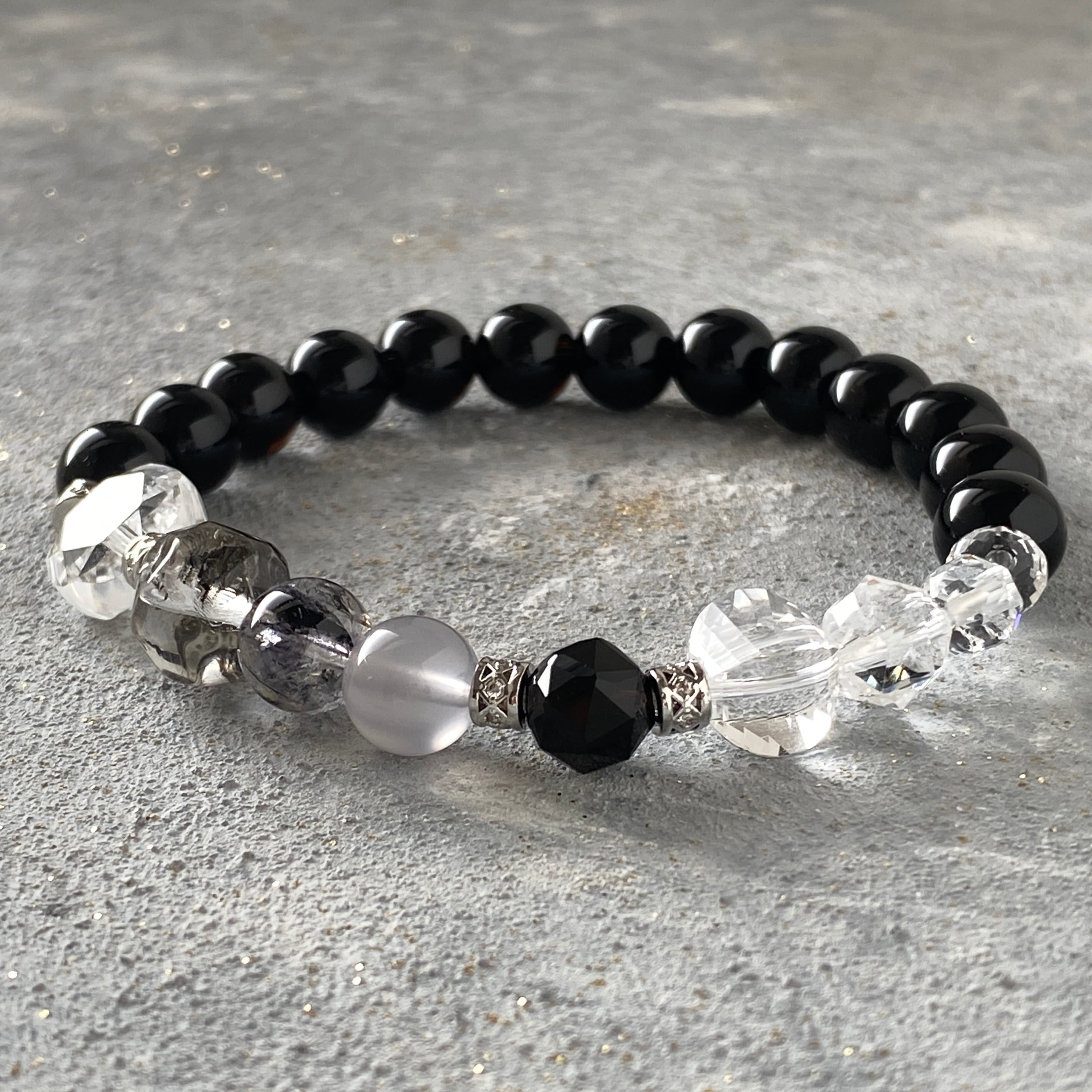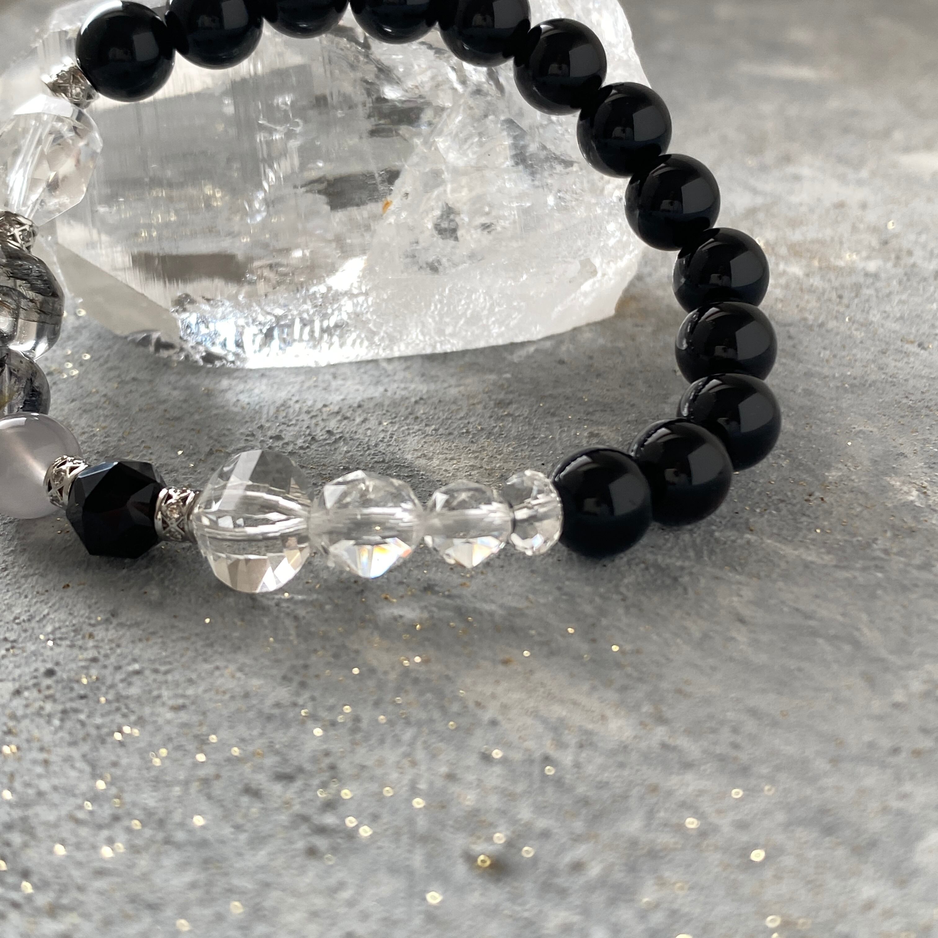 専用ページ【結界する】モリオン 六芒星水晶 エレスチャル水晶 アイスクォーツ 水晶ランタンカット 水晶スターカット 天然石ブレスレット パワーストーンブレスレット デザインブレスレット