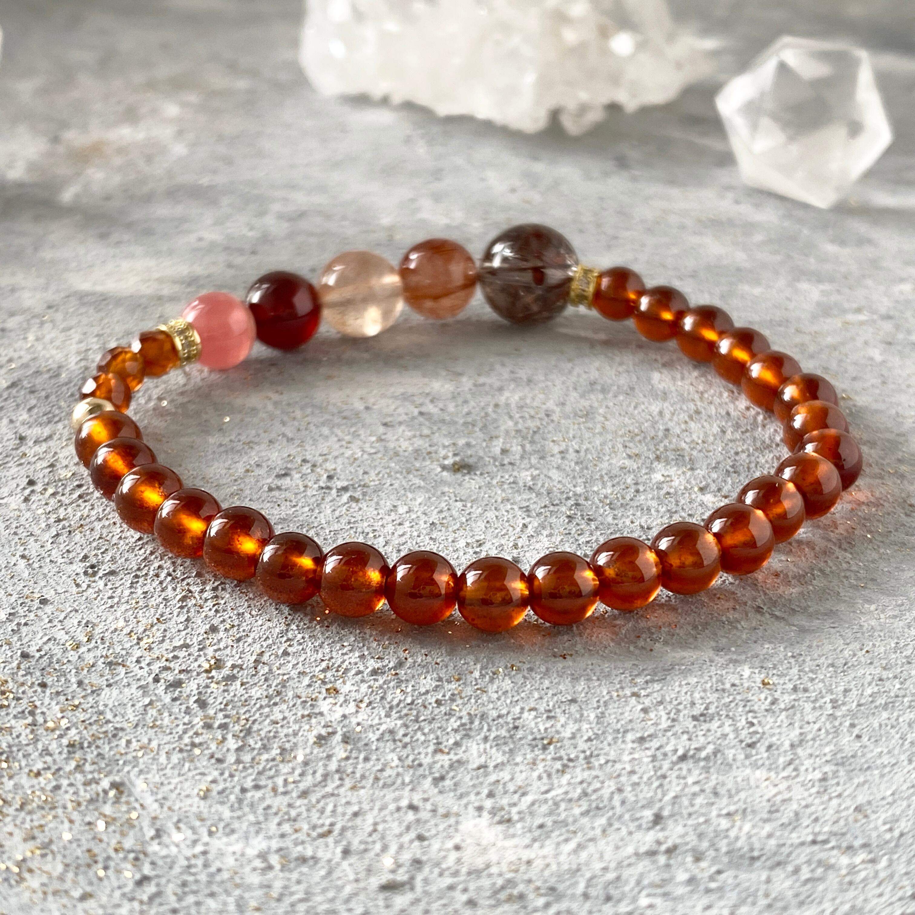 【静かな情熱】ガーネット ブロンズ・レッドルチルクォーツ 天然石ブレスレット パワーストーンブレスット デザインブレスレット