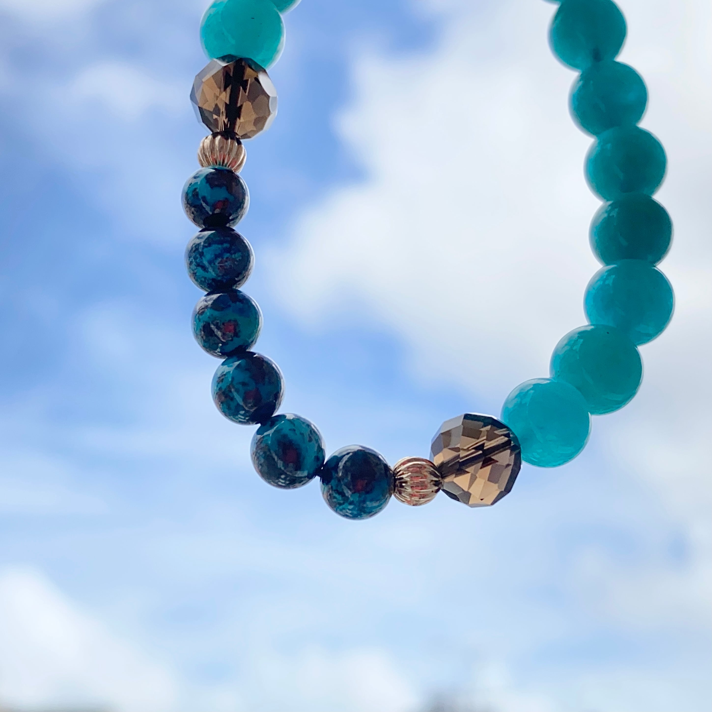 アマゾナイト クリソコラ スモーキークォーツ 天然石ブレスレット パワーストーンブレスレット