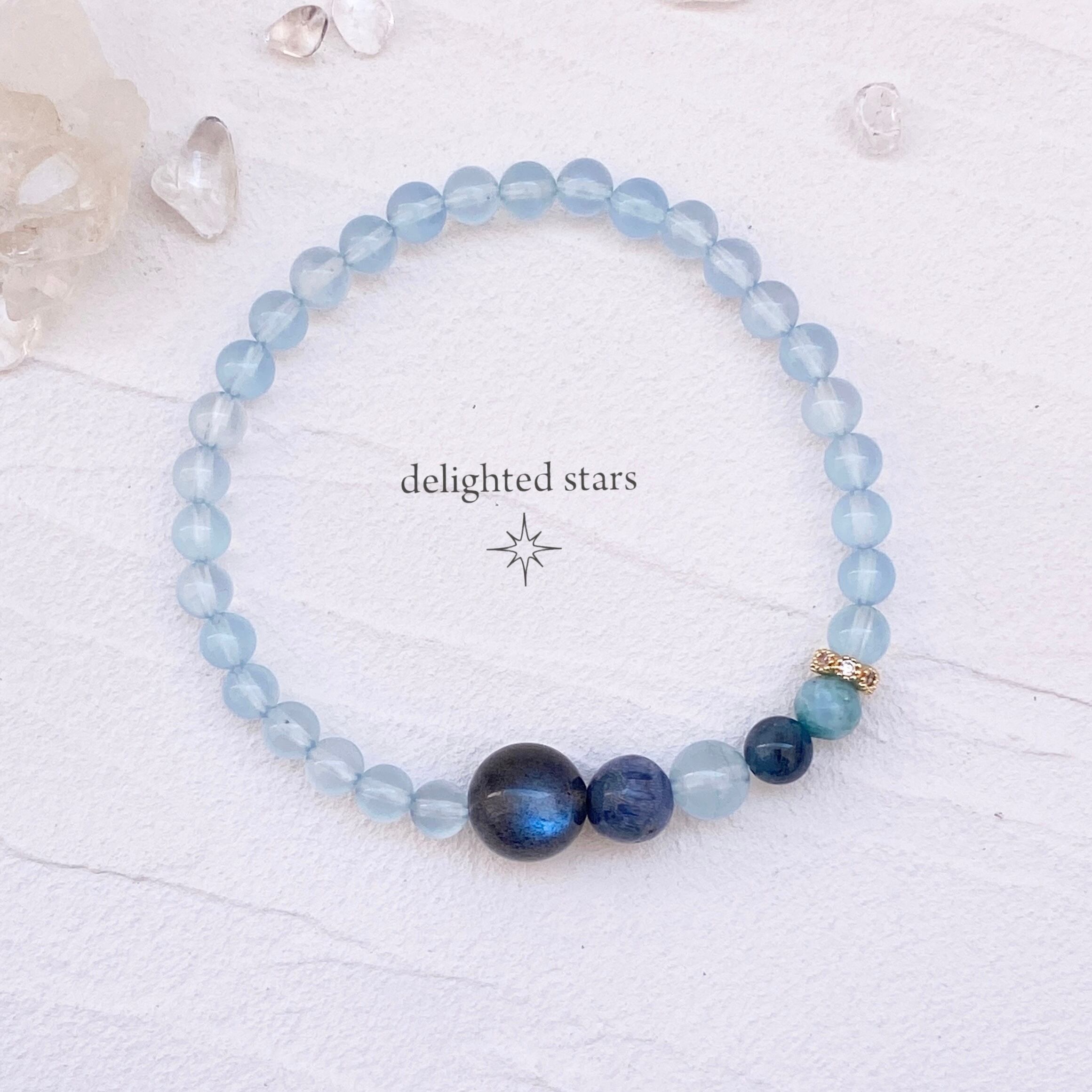 アクアマリン ラブラドライト ブルーコーラル ブラックアクアマリン ブルーオパール 天然石ブレスレット パワーストーンブレスレット デザインブレスレット