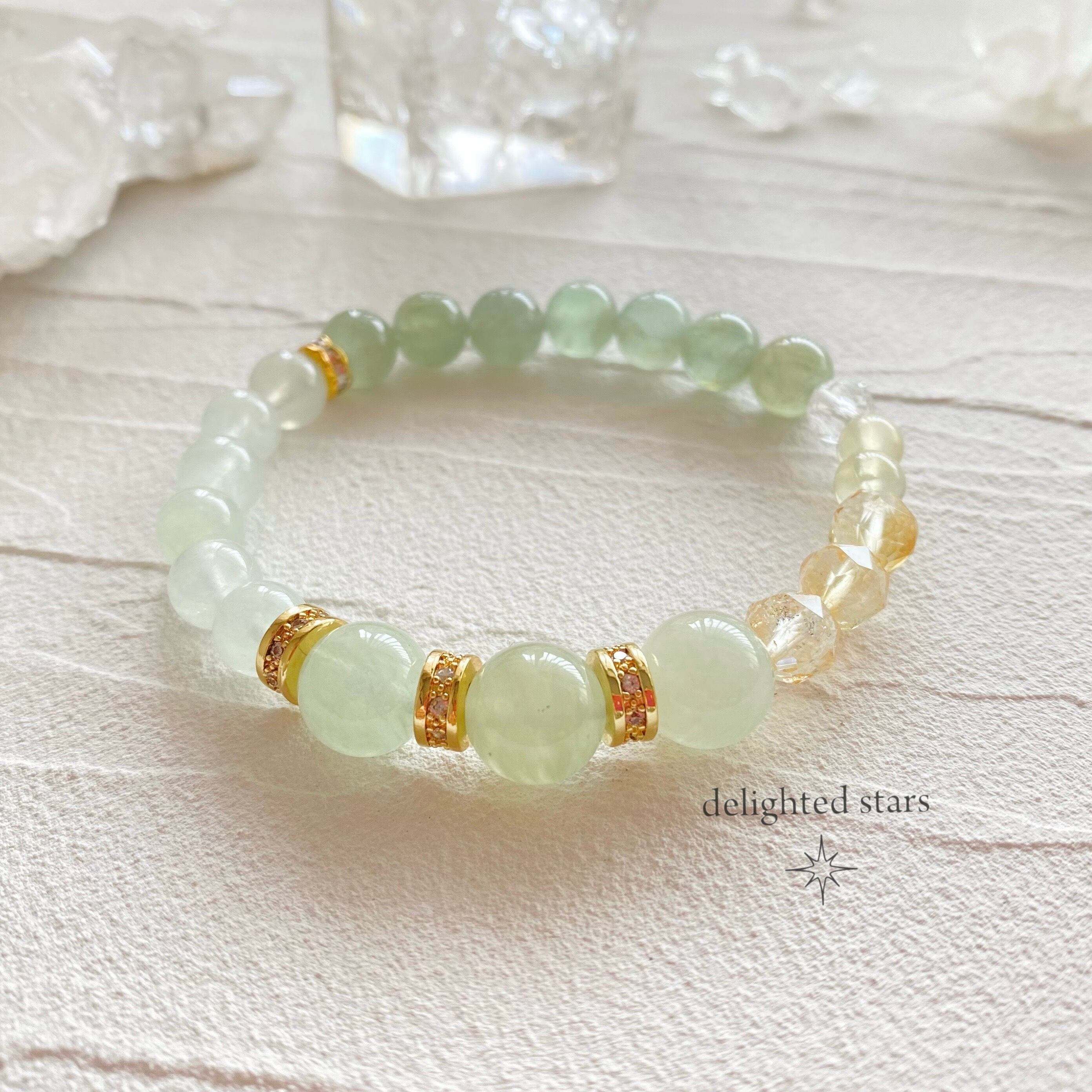 グリーンベリル (グリーンアクアマリン) シトリン ゴールデンプレナイト 天然石ブレスレット パワーストーンブレスレット デザインブレスレット