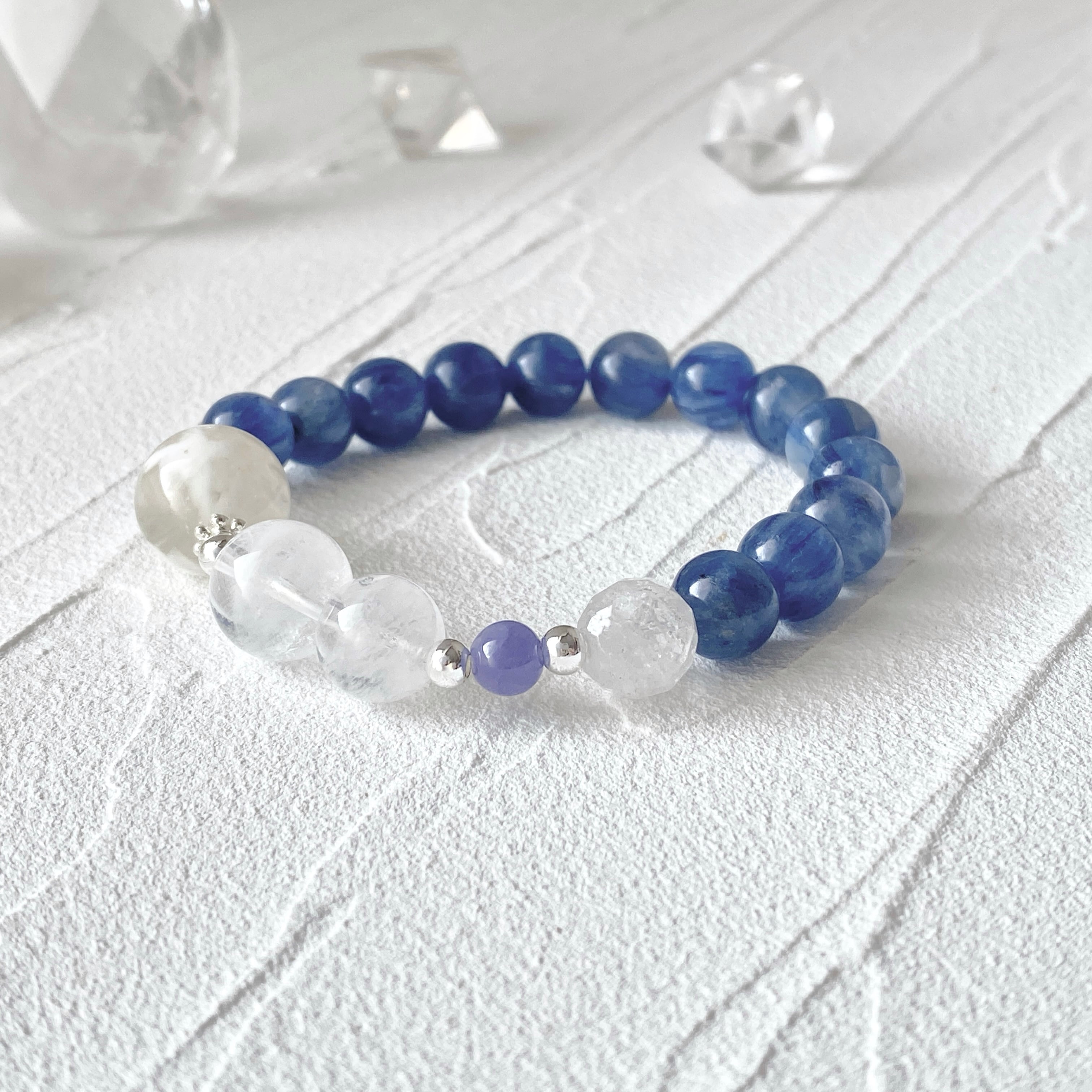 雲海と空 A カイヤナイトブレスレット セリサイトインクォーツ 千層ガーデンホワイトファントムクォーツ スノーホワイトファントムクォーツ スノークォーツ